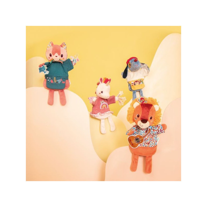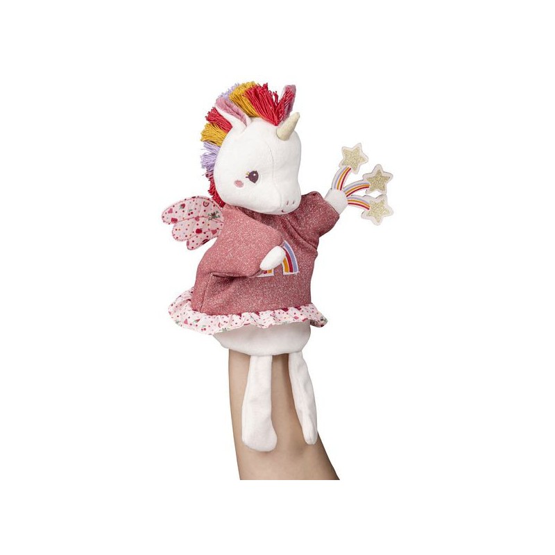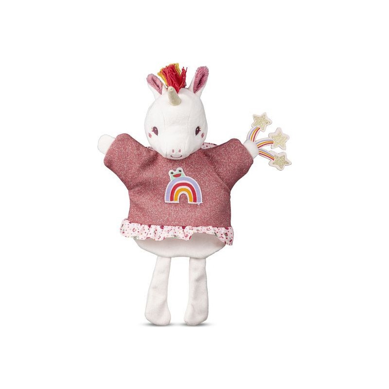 Toute douce, cette marionnette à main est aussi très agréable à câliner et se compose de polyester recyclé. Avec sa petite corne et sa crinière colorée, notre petite Lena saura capter le regard des plus petits et faire rire les plus grands !
