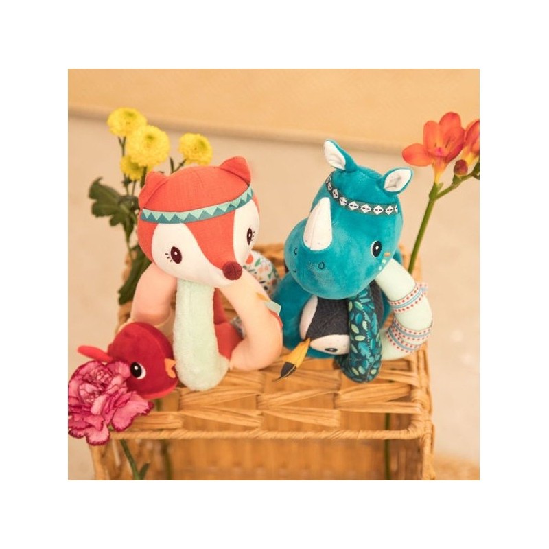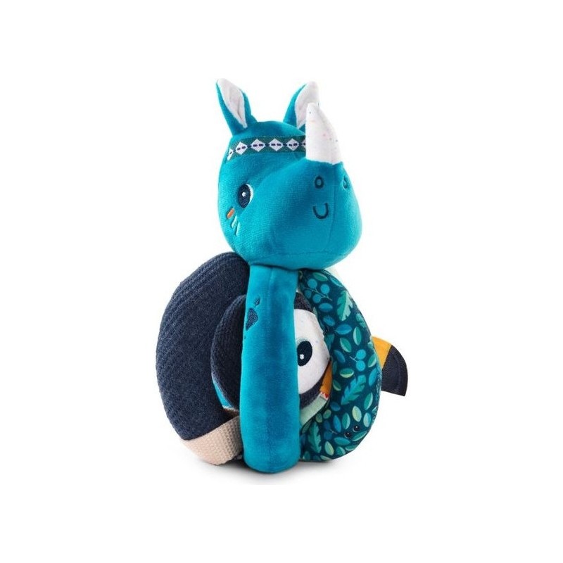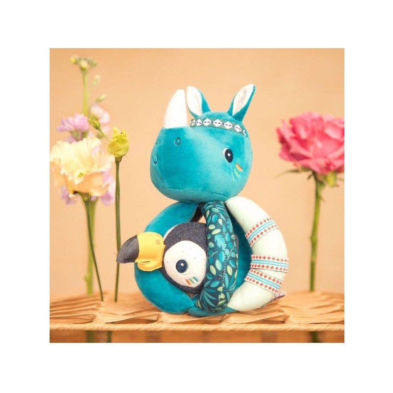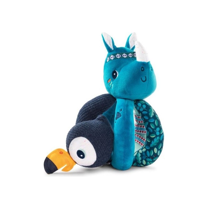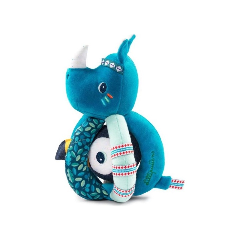 Offrez à votre bébé le hochet Marius Le Rhinocéros avec son ami Pablo le Toucan. Un hochet à poignées de Lilliputiens original, que les petites mains saisissent facilement. Marius cache son ami Pablo