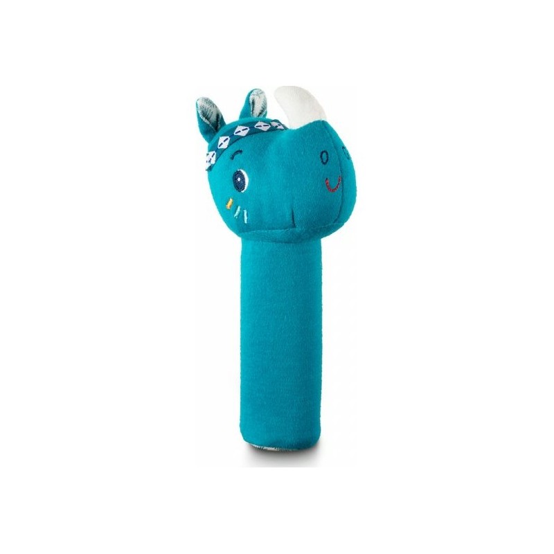 Le hochet « Pouet » Marius le rhinocéros en coton bio de la marque Lilliputiens est un hochet en tissu qui fait "Pouet" lorsque bébé appuie dessus ou le prend dans sa main. Tout doux, coloré et adorable avec la jolie tête de Marius le rhino, ce hochet est facile à prendre en main grâce à sa forme en cylindre. La corne et les petites oreilles de Rosalie rendent encore plus attirant ce hochet en coton biologique.
