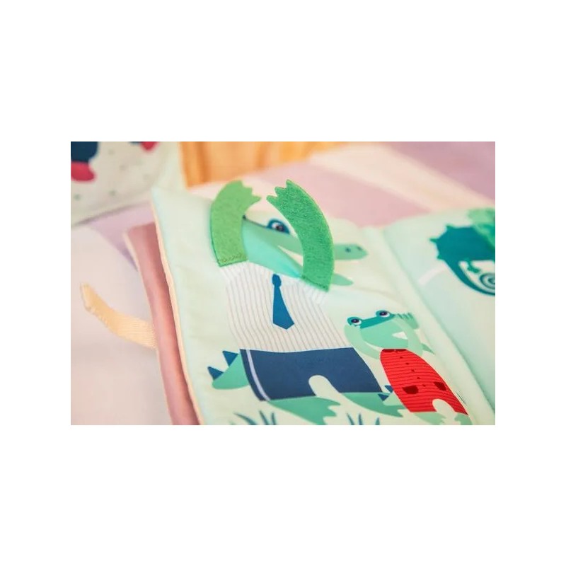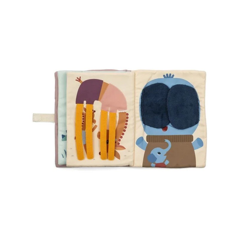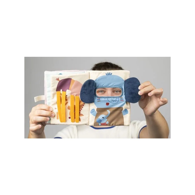 Jack et ses amis se sont lancés dans une partie de cache-cache ! À vous de les retrouver ! Avec ce livre d'activités en tissu, les enfants s'amusent à révéler les yeux des animaux derrière leur cachette : le lion avec ses pattes, le lémurien avec sa queue. Il suffit de soulever ou bouger les éléments pour participer au jeu ! En manipulant le livre, les petits stimulent de façon ludique leur motricité fine et leur toucher. Sur la couverture, c'est Jack le lion qui commence le jeu ! Ses pattes aimantées se fixent pour cacher ses yeux et se libèrent pour recommencer à l’infini. Au fil des pages, des animaux amusants et leurs petits se prêtent au jeu, invitant bébé à s'amuser avec eux. Et quand on arrive à la dernière page… Une surprise amusante attend les petits ! L’éléphant réserve une découverte rigolote derrière ses grandes oreilles ! Ce livre d'éveil, pensé pour les tout-petits dès 9 mois, est aussi un moyen d'occuper et de divertir votre bambin en voiture ou pendant des temps calmes à la maison. Il éveille la curiosité et nourrit l’imaginaire des tout-petits, pour des moments de jeu et de découverte. C'est aussi l’occasion de nommer les animaux rencontrés et d’enrichir le vocabulaire. À vos cachettes !