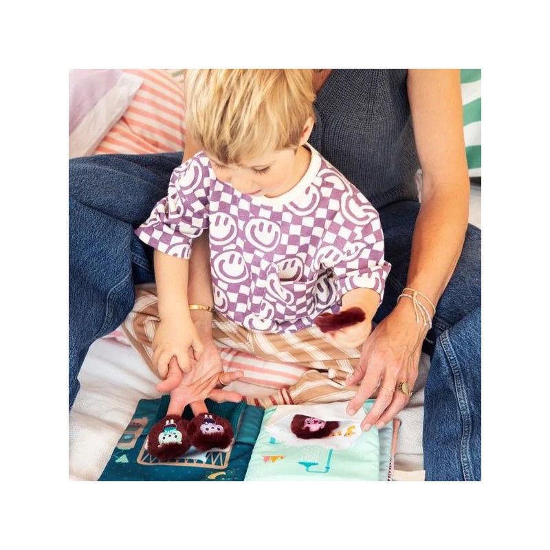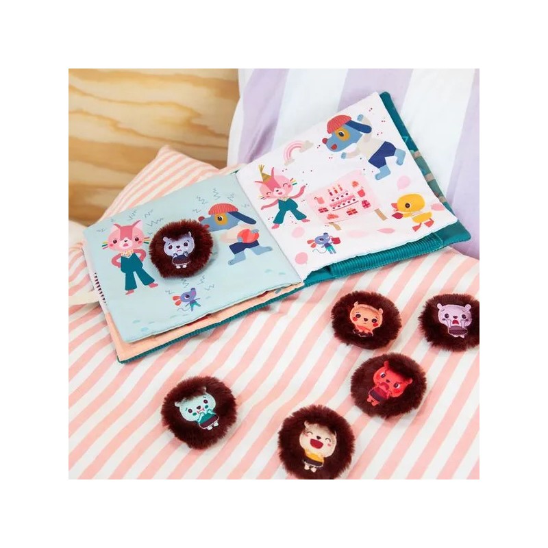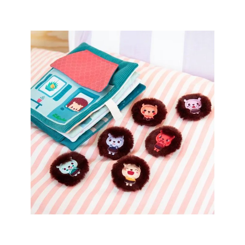Partez à la découverte des émotions de Léon le hérisson ! Ce livre d'apprentissage tout doux raconte le quotidien de Léon du lever au coucher : une façon amusante pour l'enfant d'apprendre à reconnaître et exprimer ses émotions comme un grand. Mais les journées de Léon ne sont pas sans embûches ! Ce matin-là, des spaghettis dans son assiette… Léon fait la grimace ! De page en page, accompagnez Léon dans sa journée et dans ses ressentis : une dispute avec ses copains, une fête d'anniversaire remplie de joie, un bain qui le contrarie... Au fil de sa journée, Léon passe par toutes les émotions : joie, colère, peur, tristesse, honte ou dégoût. À votre enfant de choisir l’émotion de Léon et de placer la marionnette correspondante sur la page ! Toutes ces situations font écho à celles rencontrées au quotidien par votre bambin, lui permettant de les reconnaître et de savoir exprimer ce qu'il ressent. Grâce aux marionnettes à doigt, représentant chacune une émotion, ce livre d'éveil permet de développer non seulement la vue et l'ouïe, mais aussi la motricité fine et la réflexion de l'enfant. Les histoires sont aussi bénéfiques pour l'apprentissage du langage et pour stimuler l'imagination. Trop pratique : la maison de Léon, présente sur la couverture du livre, fait office de pochette pour y ranger les 6 marionnettes. Ce livre en tissu Lilliputiens deviendra un incontournable de vos histoires du soir ! Le format 19 x 19 cm de ce livre d'apprentissage permet une bonne prise en main.