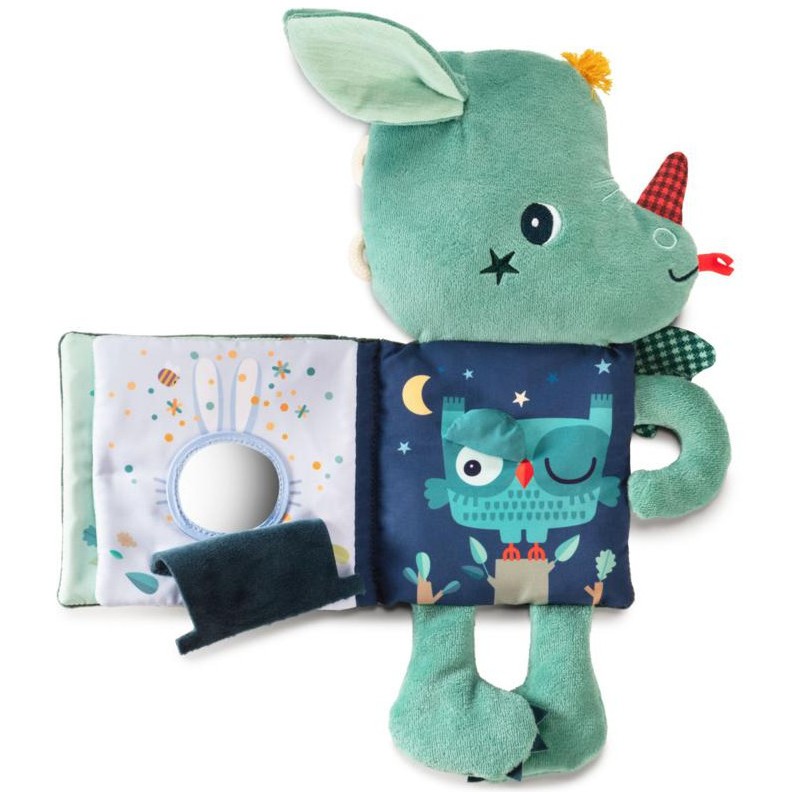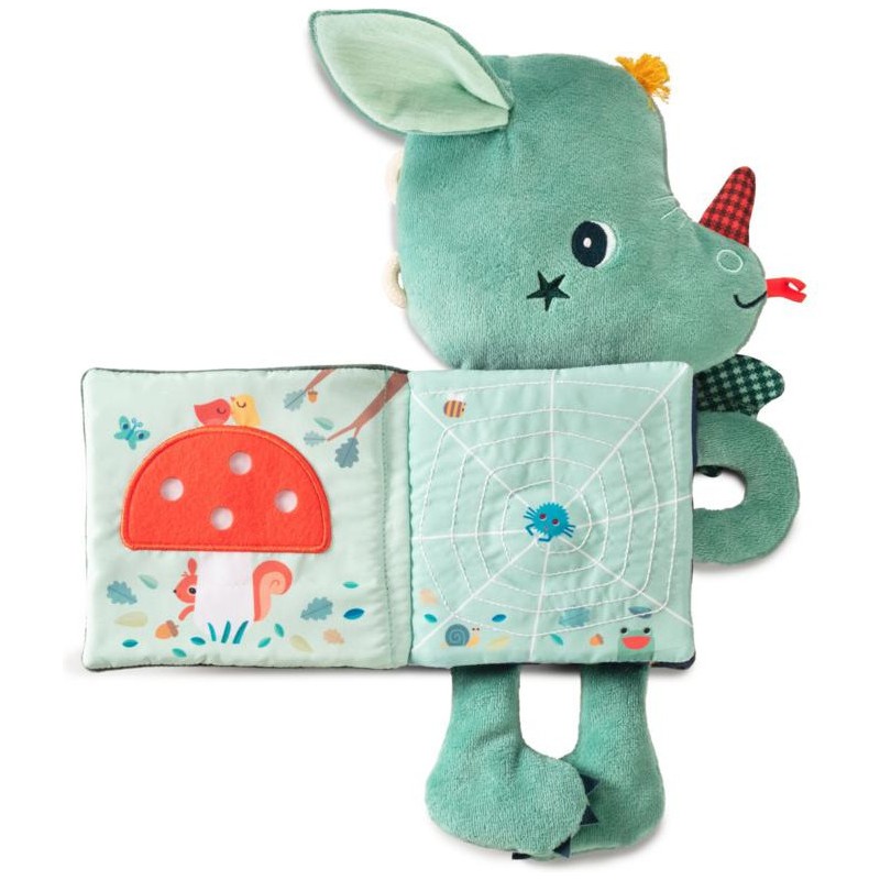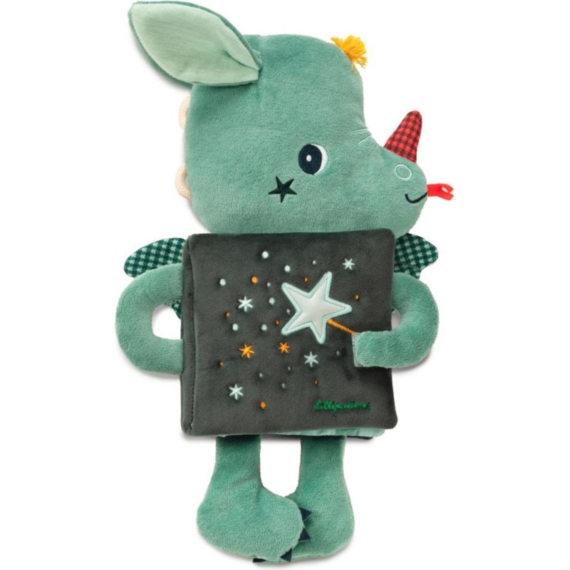 Il a pris avec lui son livre tout doux dans lequel votre petit bout pourra découvrir des activités relaxantes sur le thème de la forêt et de la magie. Ce livre doudou Joe le dragon n’attend que d’être câliné et de prendre soin à son tour de son futur petit propriétaire. Il veillera sur bébé jusqu’à ce qu’il s’endorme, car, lorsque la lumière s'éteint, l'illustration sur la couverture s’illumine comme une veilleuse.
