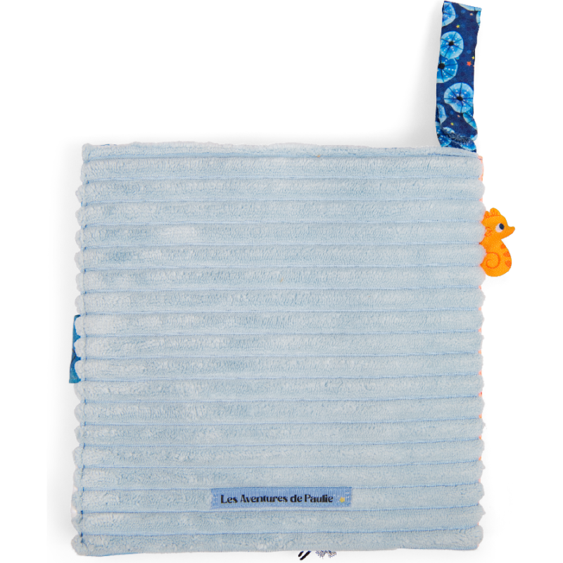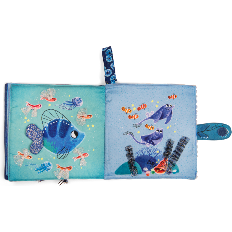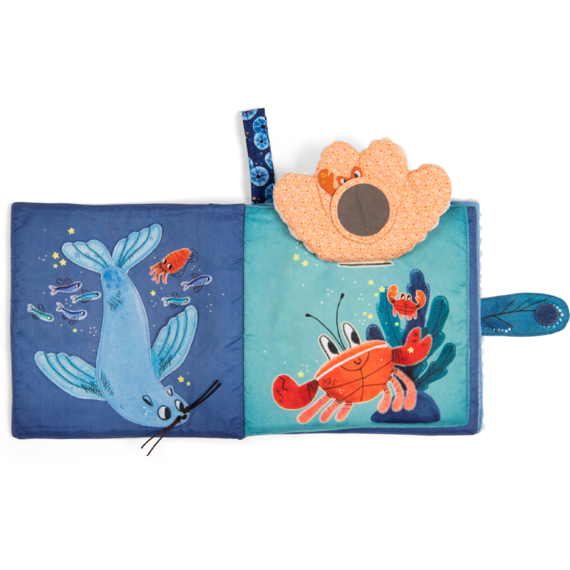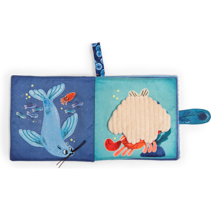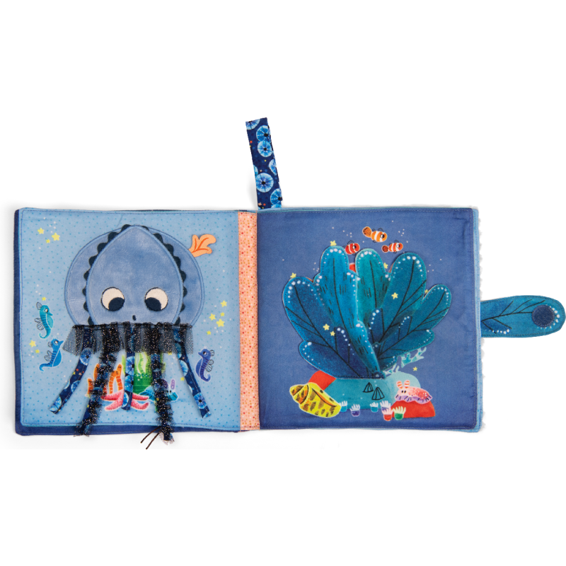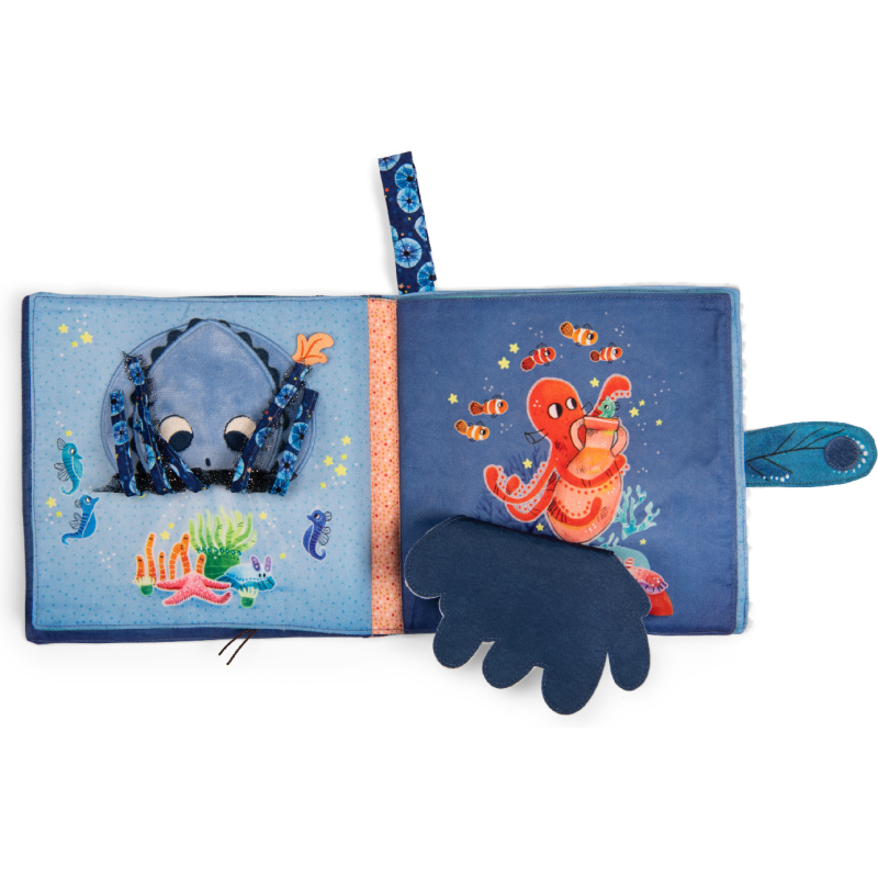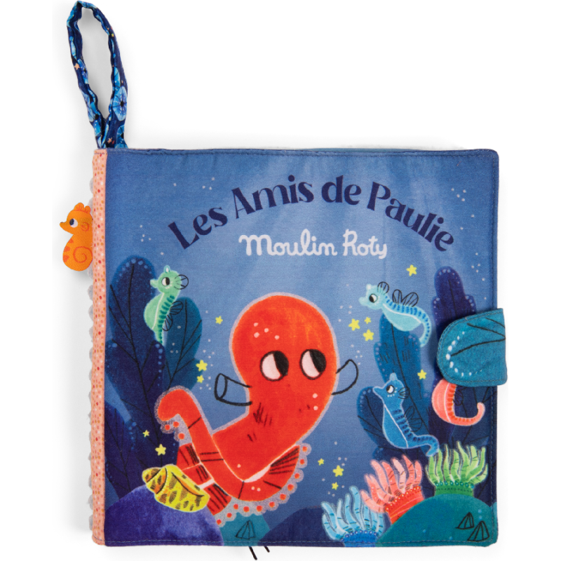 Livre tissu jouant sur les contrastes de matières et activités cache-cache intitulé Possède un système d'accroche Plouf ! Voilà Paulie, le petit poulpe malicieux. Porté par le courant à travers, les mers et les océans, il part explorer les fonds marins à la rencontre de fabuleux nouveaux amis ! Une collection dédiée à l'éveil des tout-petits par la découverte sensorielle et la narration.