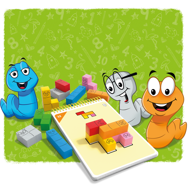 Contenu: 14 acrobasticots colorés en bois (Hêtre), 1 livret avec 60 missions, 1 règle du jeu avec les solutions.