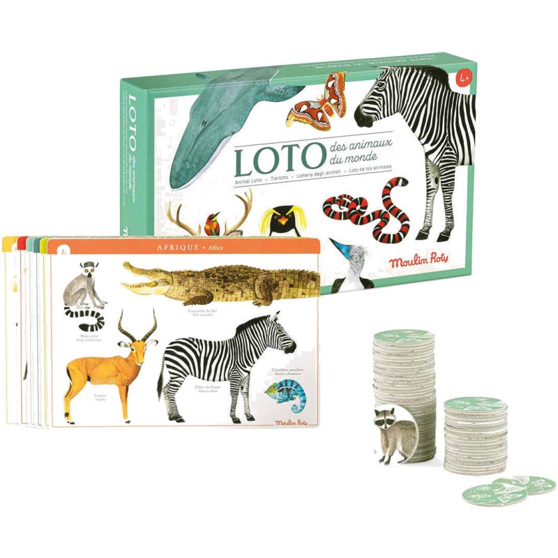 Joliment illustré, ce loto contient 6 planches continents recto-verso et 60 jetons. Le premier joueur à avoir complété entièrement sa ou ses planches remporte la partie. Idéal pour jouer en famille ou avec les copains. Conçu et fabriqué en France.