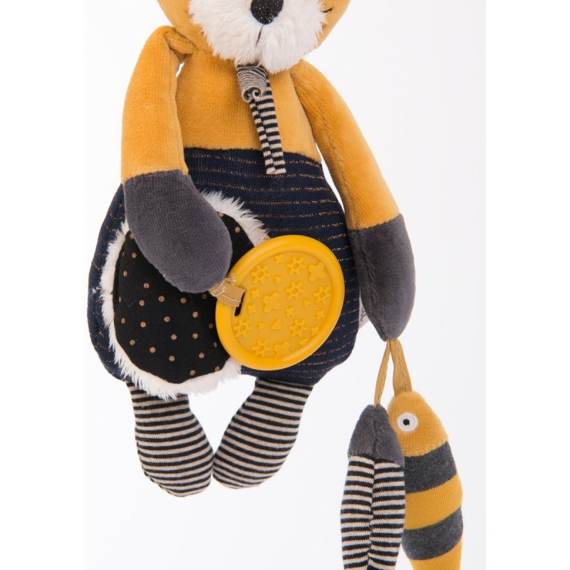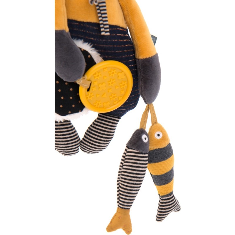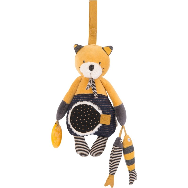 Lulu le chat a tout ce qu'il faut pour amuser bébé ! Il transporte une spatule dentaire, des sardines avec papier crissant et surprise… un miroir caché dans sa combinaison ! Il s'accroche partout grâce à son lien, et fait gling-gling quand on le secoue !