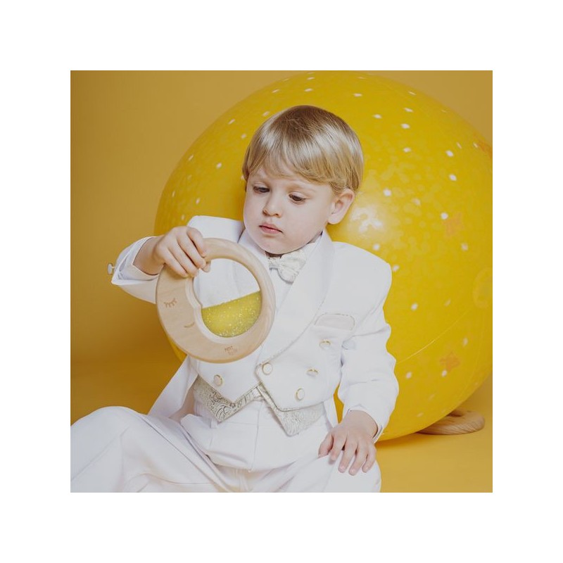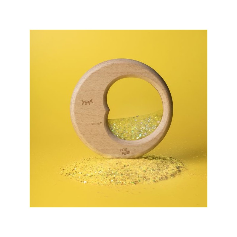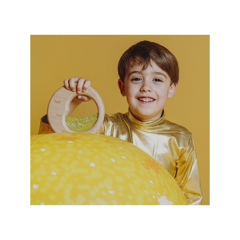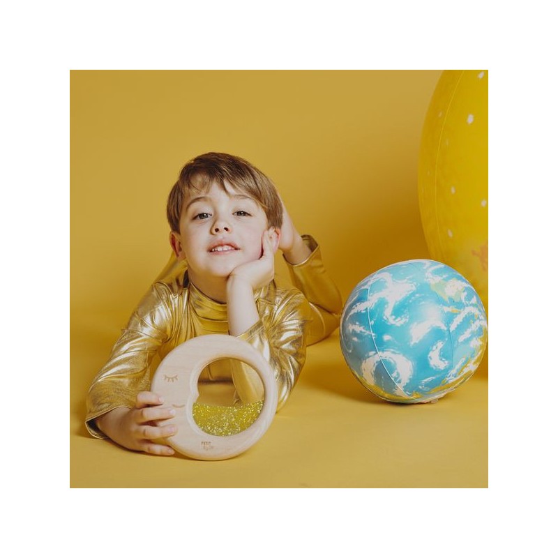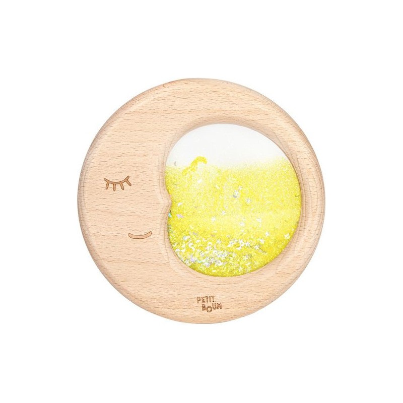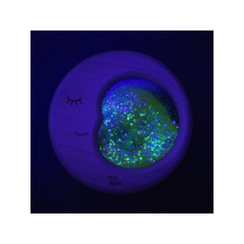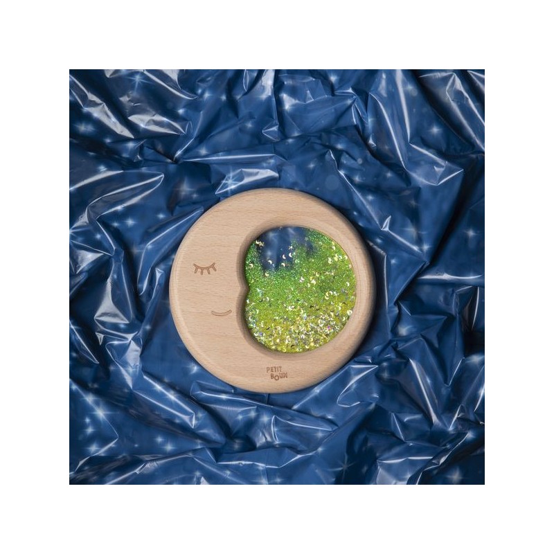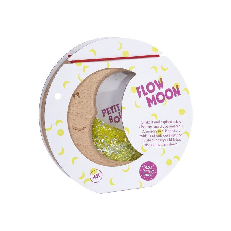 Découvrez la lune sensorielle Moon de la marque Petit Boum. Un jouet d’éveil coloré, inspiré de la pédagogie Montessori, qui stimule les sens des bébés dès 6 mois. Un petit morceau de galaxie au bout des doigts... Toute la magie des bouteilles sensorielles Petit Boum désormais en forme de lune, avec un cadre en bois de hêtre qui peut être saisi facilement par les mains des plus petits. Cette lune est remplie de liquide coloré, de paillettes et de fluide fluorescent qui brille dans le noir. Il suffit d'un mouvement pour s'émerveiller en observant les éclats de lunes et d'étoiles, et les effets que la lumière crée en les traversant. Une invitation à explorer, à éveiller les sens et la curiosité des tout-petits, et à entrer dans un univers calme et relaxant. Fabriquée à la main en Espagne, cette lune sensorielle est pensée et conçue pour les enfants dès 6 mois. L'intérieur est étanche et entièrement scellé pour que les petits puissent la manipuler en toute sécurité. Les jouets sensoriels Petit Boum sont exemptés de Bpa, de métal et de phtalates. Dimensions de la lune sensorielle : 15 x 2 cm.