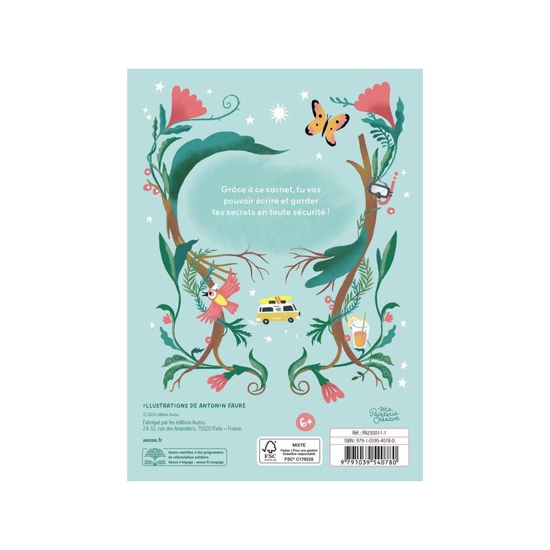 Ce carnet secret est le journal intime parfait pour les enfants. Grâce à son cadenas fournis, ils pourront garder leurs secrets des vacances. La couverture brille aux couleurs de l'été !