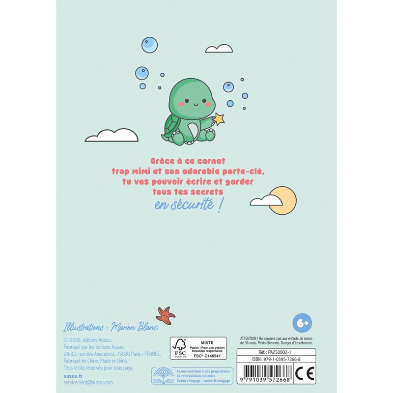 Ma papeterie créative - Mon carnet secret - Porte-clé tortue - Activités et loisirs créatifs - Auzou