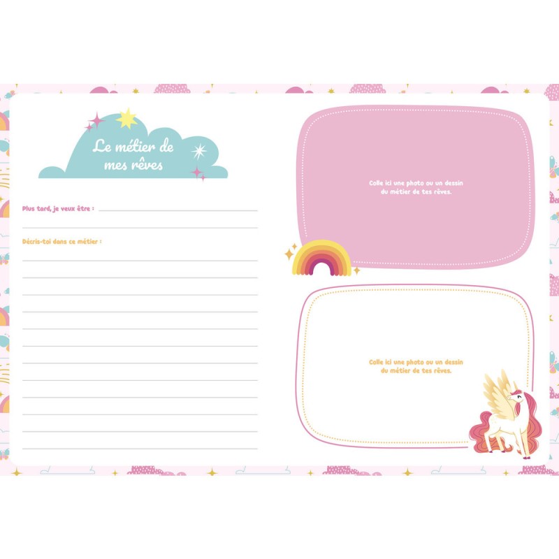 Un coffret licorne super tendance ! Il contient un carnet secret qui se ferme avec cadenas, et de la jolie papeterie licorne : un crayon de papier, une gomme un trombone licorne, des autocollants, des post-it, et des jolis charm pour réaliser un bracelet sur lequel mettre la clé du carnet pour la garder toujours avec soi.