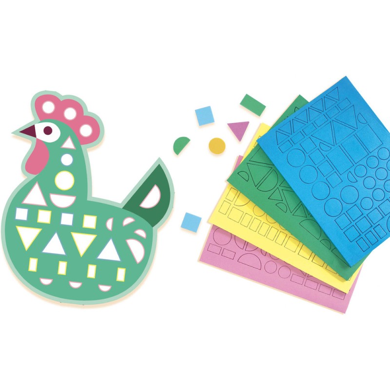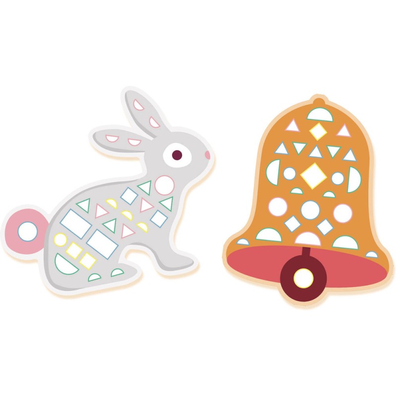 8 grandes formes silhouettées en carte fine, à décorer à l’aide de 200 autocollants en mousse : une première activité créative pour exercer la motricité fine de l’enfant. Sur la thématique de Pâques.