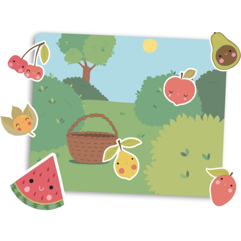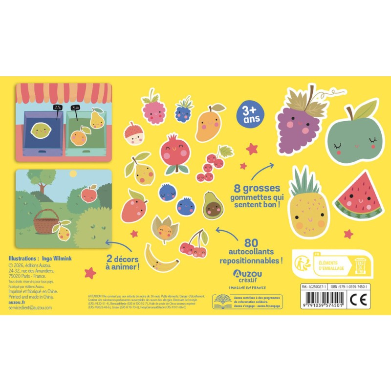 8 gros stickers fruits silhouettés à sentir 50 stickers fruits 2 décors Un concentré de bonne humeur et de parfums fruités ! Une activité créative qui stimule l’odorat et l’imagination !