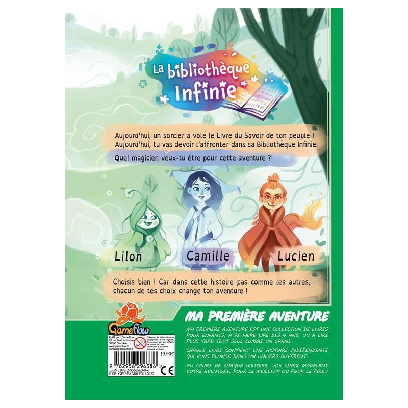 La gamme "Ma première aventure" réalise ton rêve d'être un héros en te plongeant au cœur d'une aventure passionnante et interactive. Avec ces livres uniques, tu as la possibilité de choisir un personnage et de construire ton propre récit en prenant des décisions qui auront un impact direct sur l'histoire. Chaque livre est conçu avec des pages coupées en trois, représentant différentes options de choix pour ton personnage. À mesure que tu progresses dans l'histoire, tu tourneras les pages pour découvrir les conséquences de tes décisions. Cela te permettra de façonner ton aventure, de résoudre des énigmes, de surmonter des défis et de vivre des moments palpitants. Aujourd'hui, l'heure est venue de défendre l'honneur de ton peuple ! Un sorcier malveillant a osé voler le précieux Livre du Savoir, et c'est à toi de le retrouver et de le récupérer. Le sorcier s'est réfugié dans sa mystérieuse bibliothèque Infinie, un endroit rempli de secrets et de pièges magiques. Armé de courage et de détermination, tu te lances dans cette aventure périlleuse. Quel personnage choisiras-tu d’incarner ? Lilon l’elfe des airs, qui vole et guérit toutes les misères ? Camille l’ensorceleuse, maîtresse des glaces qui n’a pa froid aux yeux ? Lucien le pyromancien, qui dresse les flammes au quotidien ?