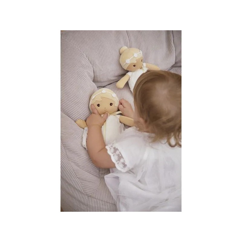 C'est le moment de rencontrer Daphné : une jolie poupée en tissu pleine d'élégance, dans son format 25 cm ! Adaptée à bébé dès sa naissance, elle fait partie de la collection de poupées Tendresse de Kaloo. Élégamment vêtue d'une robe ivoire à pois en organza, la poupée Daphné est prête à célébrer les moments les plus précieux comme un baptême ou un mariage.
