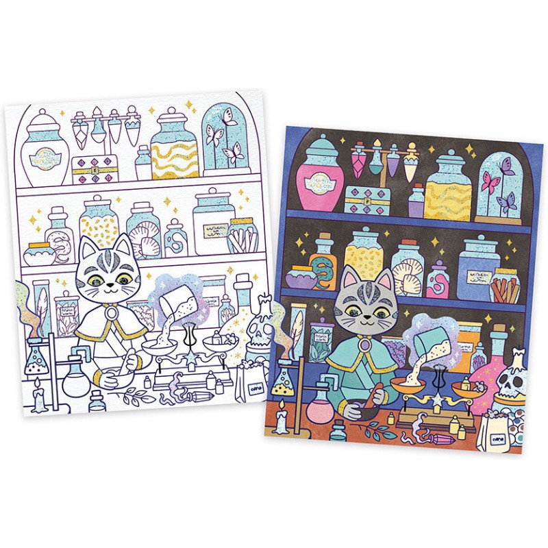 Sorcières et magiciens ont besoin de couleurs ! Avec ce kit créatif, les enfants dès 7 ans peignent 4 tableaux sur le thème de l’école de magie comme de véritables artistes. C'est un super moyen de passer un temps calme, dédié à l'expression créative ! Le plus de ces tableaux à peindre, ce sont leurs traits pailletés et leurs zones déjà colorées à paillettes : quel bel effet scintillant ! Pour peindre facilement, les enfants profitent d'un pinceau à réservoir d'eau super pratique. Et pour un arc-ciel de couleurs, une palette de peinture aquarelle avec 15 teintes est incluse. À l’école des sorciers, apprentis lanceurs de sorts et créatures ailées côtoient potions acidulées et grimoires enchantés. L'autre atout de ce loisir créatif peinture, c'est sa boîte qui se transforme en joli cadre pour exposer sa dernière création avec fierté ! Au total, ce coffret créatif contient : 4 tableaux à peindre, 1 pinceau à réservoir d'eau, 1 palette avec 15 couleurs de peinture aquarelle, 1 éponge, 4 coins adhésifs pour changer la boîte en cadre et 1 feuillet avec modèles et instructions. Malin, pour une activité créative en toute autonomie ! Il faudra compter 30 minutes par tableau. Explorez les mystères de la magie avec la collection "Magic School", des kits de loisirs créatifs pour enfant sur le thème des apprenti(e)s sorcier(ère)s, pour des après-midis créatifs et enchantés !