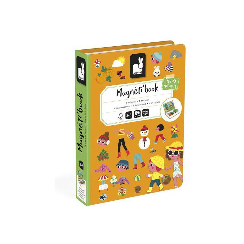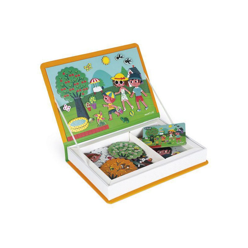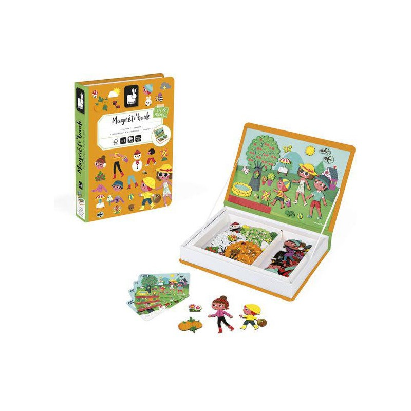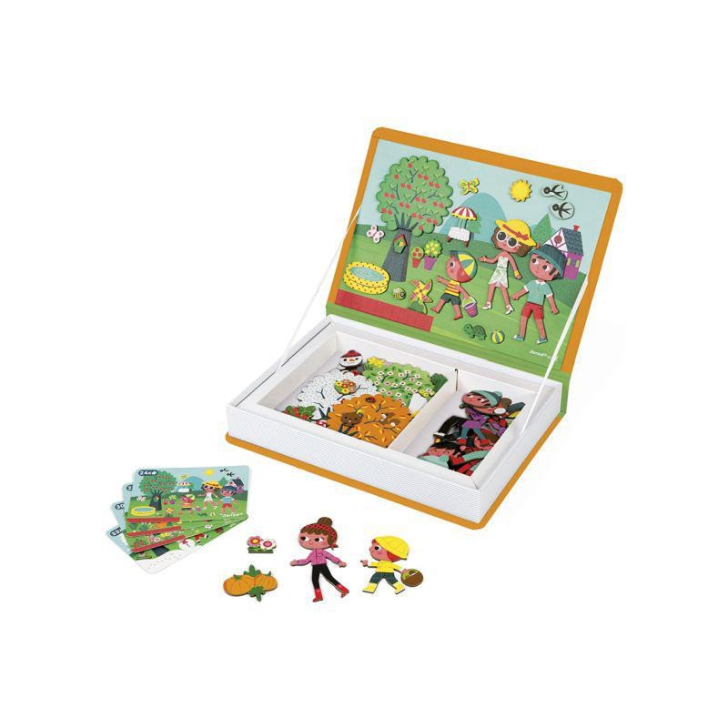 Le Magneti'book vous permet de découvrir les quatre saisons ! Magneti'Book est un jeu éducatif intelligent pour les enfants à partir de 3 ans qui peut être facilement transporté et rangé. L'édition 4 saisons permet aux enfants d'inventer et de créer de magnifiques scènes. Les 4 cartes modèles leur permettront de comprendre les détails de chaque saison. Ils peuvent également utiliser les 115 aimants pour créer la scène sur la scène magnétique. Ils seront capables de créer leurs propres histoires et d'imaginer les scènes qu'ils désirent. Son format livre permet de stocker ou d'emporter facilement le Magneti'book en vacances. Les possibilités infinies en font un excellent choix pour occuper les enfants.