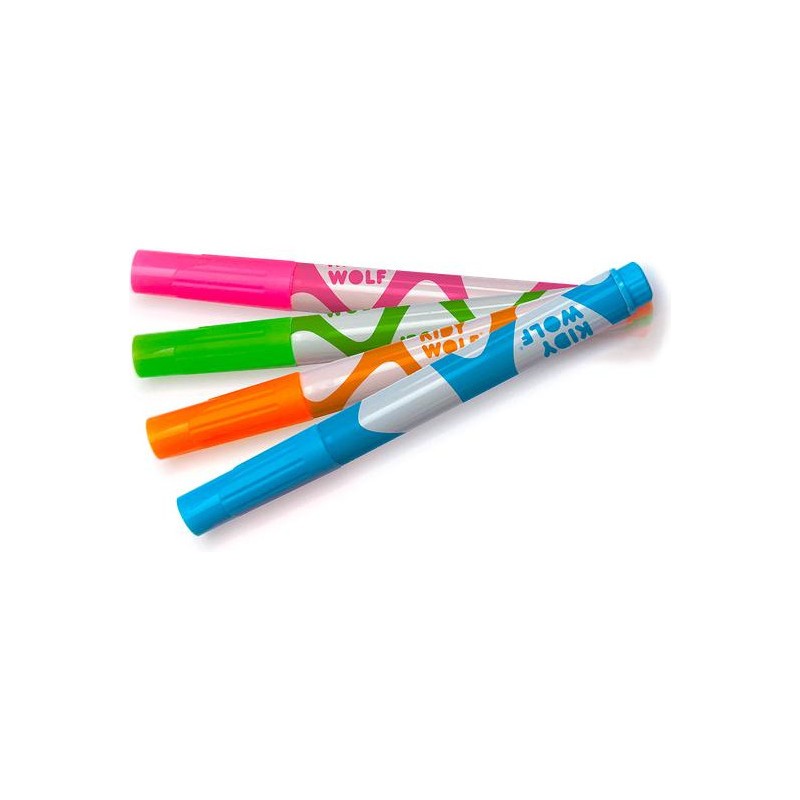Kit de marqueurs effaçables aux couleurs fluorescentes pour dessiner sur le tableau noir de la Kidydraw-Pro. Ils mettant en avant un effet néon qui sublimeront les couleurs des dessins de vos enfants dans l'obscurité.