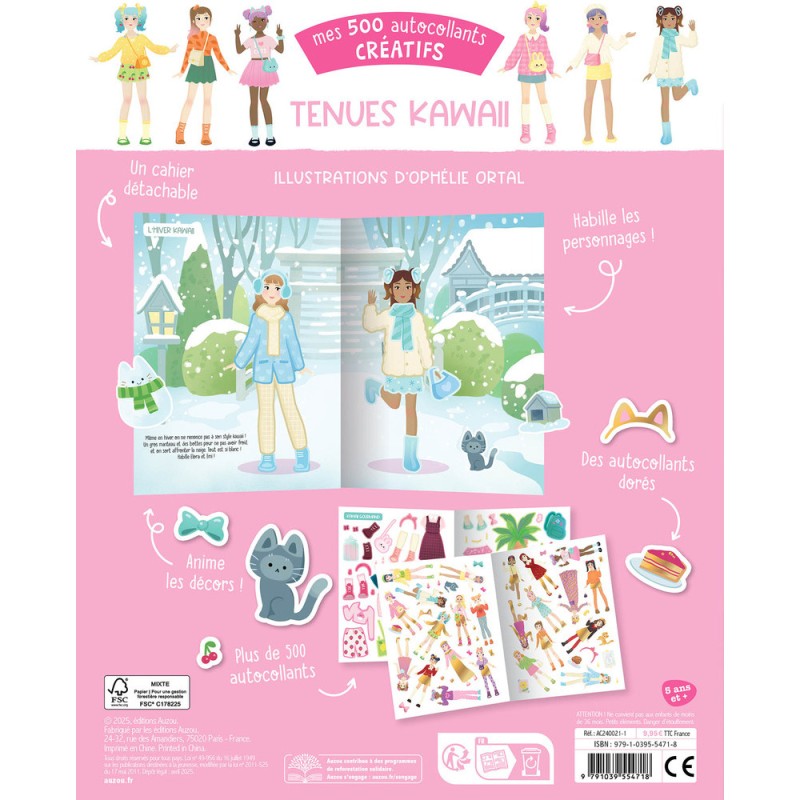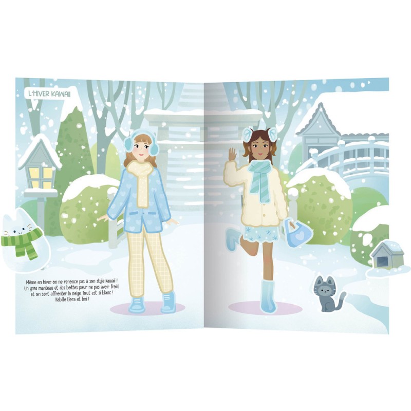 Une collection d’autocollants pour laisser s’exprimer toute sa créativité. Habille les personnages et anime les beaux décors grâce aux autocollants dorés ! Un nouveau cahier d'autocollants sur la mode Kawaii, pour sortir au restaurant, en hiver ou le soir ! Découvre ton style préféré !