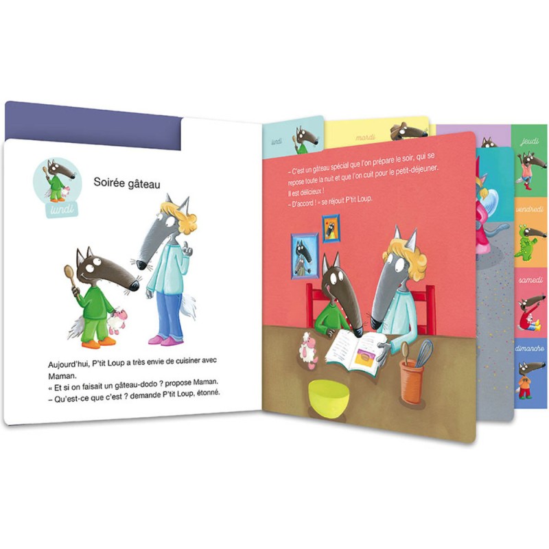 Découvrez le livre jeunesse P'tit Loup de la marque Auzou !Une belle semaine attend P'tit Loup ! Lundi, il fait un gâteau avec Maman ; mardi, c'est carnaval, tout le monde est déguisé ; mercredi, c'est soirée télé avec Papa devant un film de pirates ; jeudi, il part faire du camping, une soirée sous la tente ; vendredi, c'est super soirée pyjama avec Louka et Gaspard ; samedi, P'tit Loup va chez Papili et Mamili, à la découverte des étoiles ; et dimanche, toute la famille joue aux jeux de société.A partir de 2 ans.