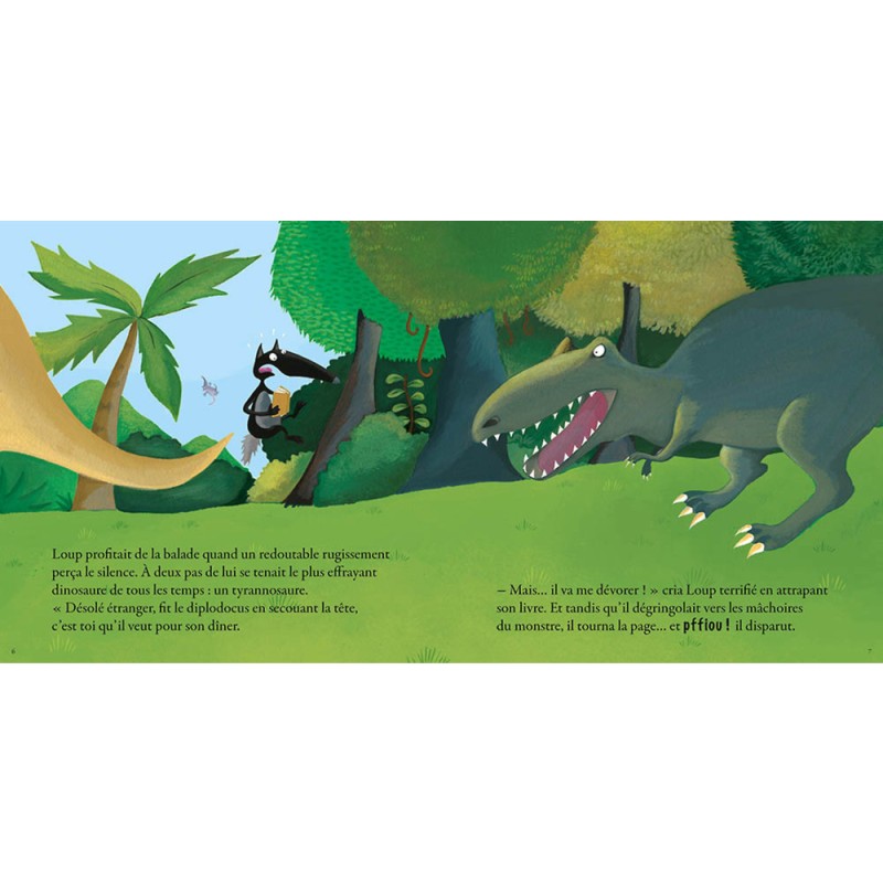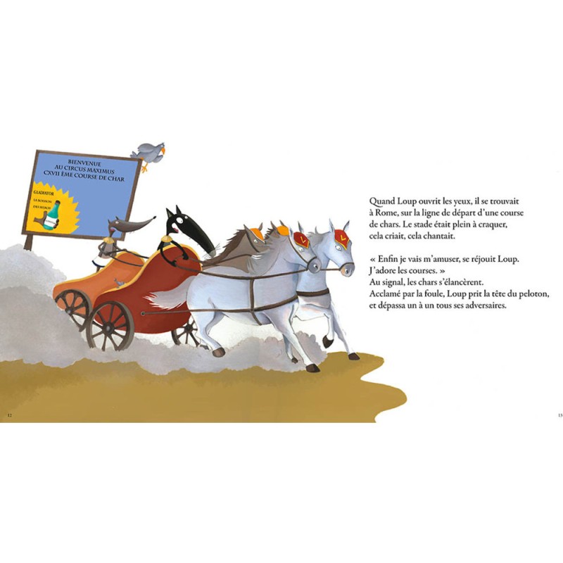 Un jour, Loup fait une découverte extraordinaire dans son grenier : un livre à voyager dans le temps. Et pfffiou ! Le voilà parachuté au temps des dinosaures, des hommes préhistoriques, au côté de Jules César ou encore au temps de la révolution française... Un long voyage dans le temps plein de rebondissements ! Les enfants adoreront écouter cette histoire avant d'aller dormir et, par la suite, adoreront les lire eux-mêmes. Le livre est grand format, avec une couverture cartonnée avec de la mousse, ce qui est agréable au toucher. Nombre de pages : 32. Dimensions : 25 x 25 cm.