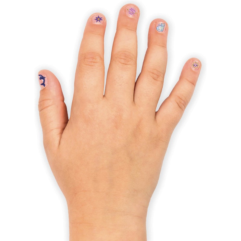 Cette pochette contient plus de 150 stickers d'ongles (nail art) à coller sur les ongles des petits comme des grands. Certains brillent !