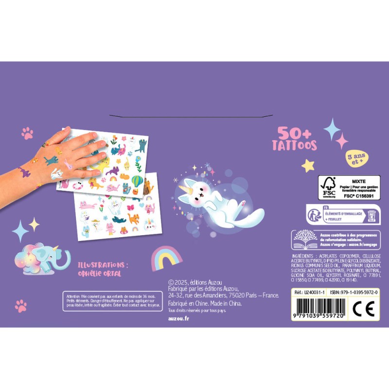 Dans cette petite pochette pratique, les enfants découvrent plus de 50 tatouages à l’effigie d’Akiko le chat-licorne : des chats super mignons, de jolies fleurs, des motifs kawaï… il y en a pour tous les goûts !