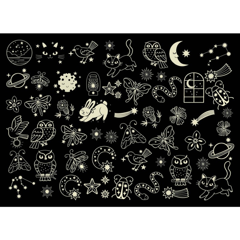Une magnifique pochette contenant 50 superbes tatouages. En plus, ils brillent dans le noir!