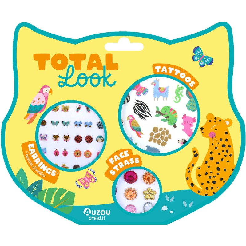 Les pochettes Total look invitent les enfants à s’amuser à se métamorphoser selon leurs envies ! Chaque pochette propose 3 accessoires pour un look complet ! Une pochette qui propose : des strass de visage, des tattoos et des boucles d'oreilles autocollantes qui brillent ! Contenu :
