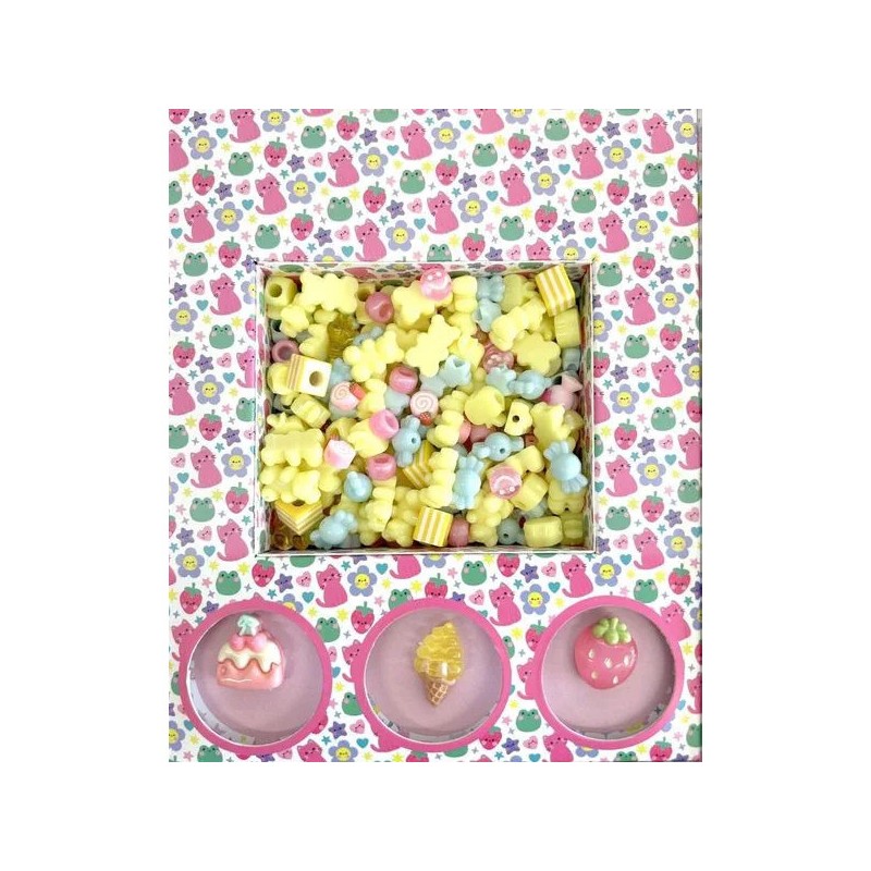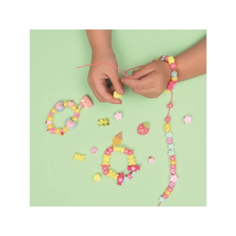 Dès 3 ans, l’enfant trouvera dans ce coffret un assortiment de perles de couleurs et de formes différentes, ainsi que des breloques fantaisie whaouh !