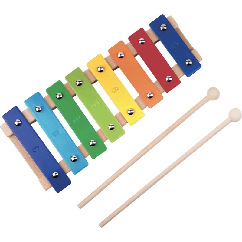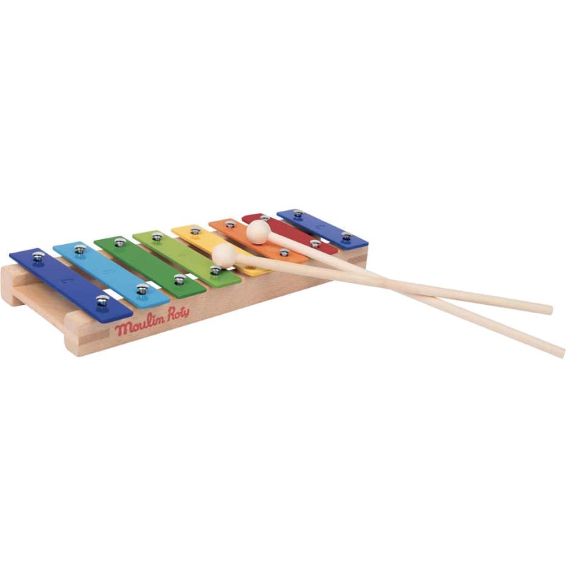 Pour petits musiciens, métallophone multicolore à 8 tons avec mailloche. Développe le rythme, la motricité et l'éveil musical des tout-petits.