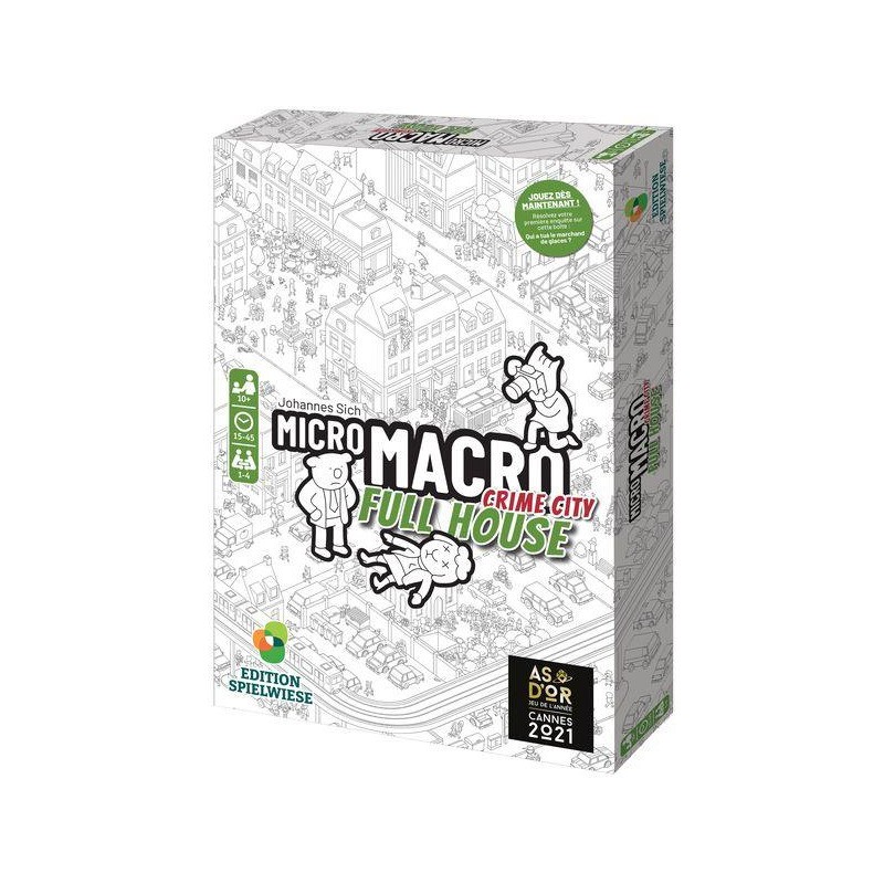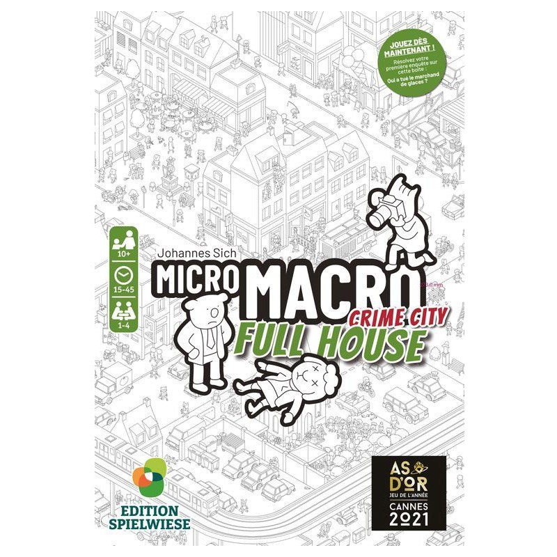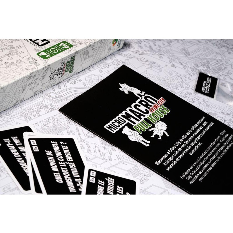 Bienvenue à Crime City, la ville où le crime menace à chaque coin de rue. Secrets macabres, vols sournois et meurtres de sang-froid sont monnaie courante par ici. Full House est le second volet de la série MicroMacro : Crime City. C‘est une nouvelle partie de la ville, avec ses 16 enquêtes à mener, qui vous ouvre les bras !
