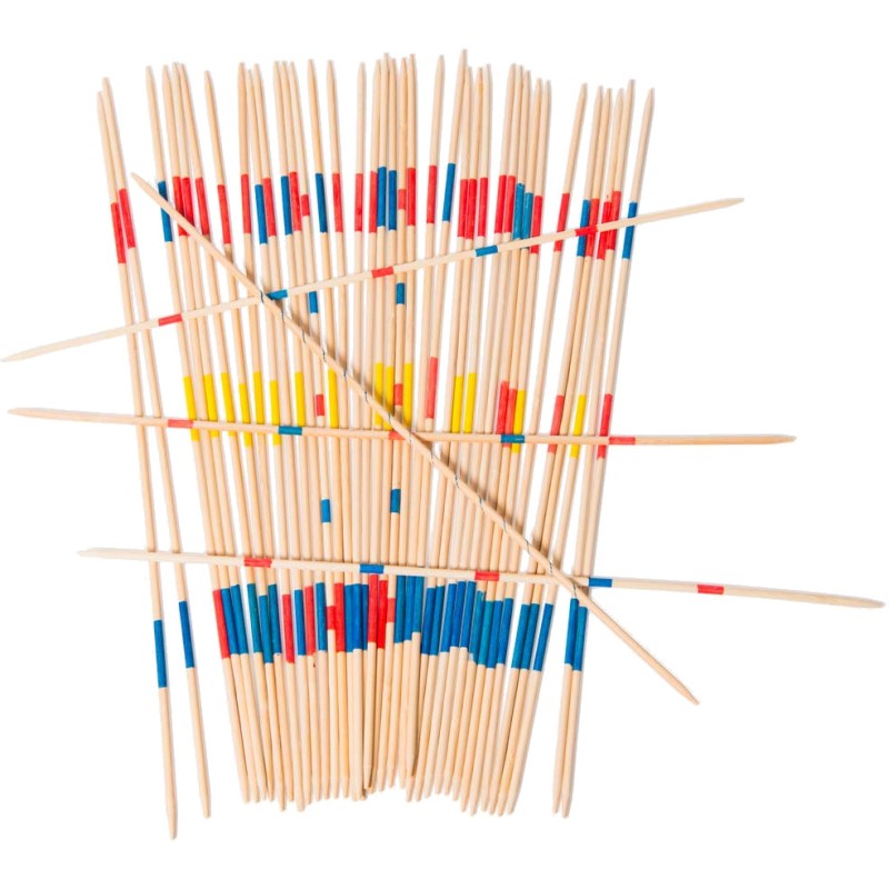 Mikado géant avec des baguettes en bois de 50cm dans un sachet en tissu épais, idéal pour jouer en famille et tester la déxterité et la précision de chacun.