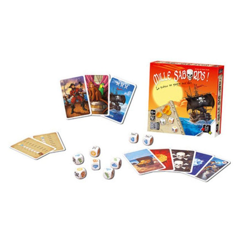 Glissez-vous dans la peau d'un vieux loup de mer et organisez des parties de dés endiablées ! A l'aide des déroutantes cartes Pirate, défiez la chance et vos adversaires pour réaliser des combinaisons de dés et marquez un maximum de points. A votre tour, révélez une carte Pirate qui va influer sur votre tirage.