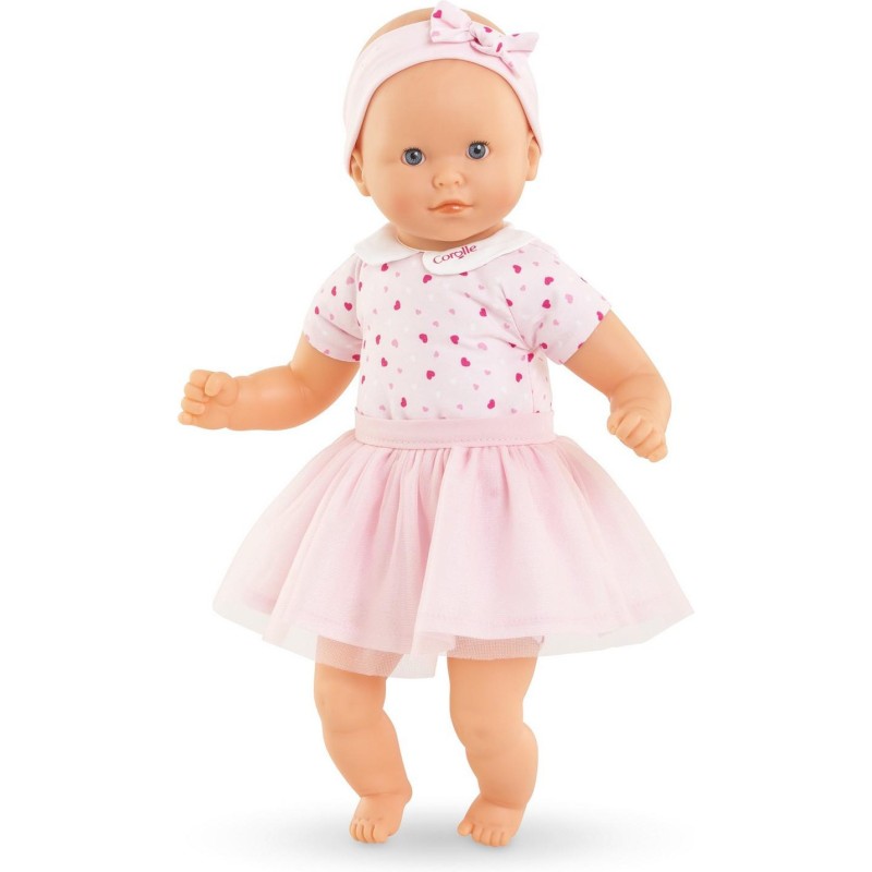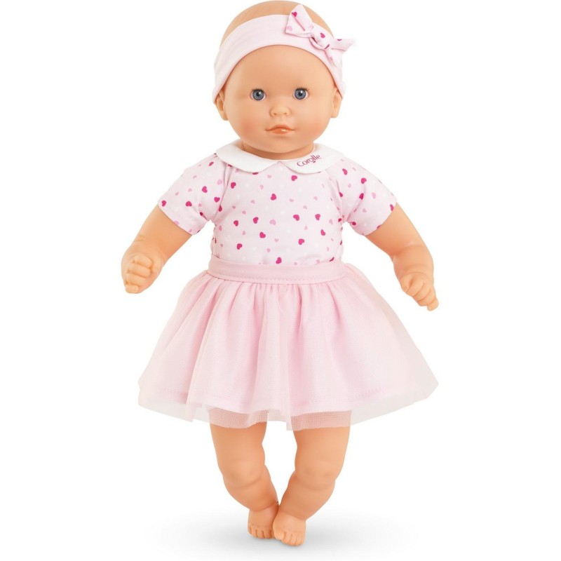 Un look irrésistible : Mon Adorable Petit Poupon Cœurs arbore un joli tissu imprimé de petits cœurs roses, un col claudine raffiné orné du logo Corolle et un tutu en tulle amovible. Son bandeau assorti vient parfaire cette tenue empreinte de douceur.