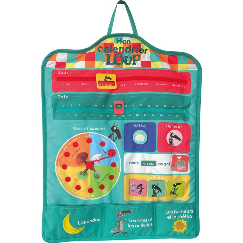 Un joli calendrier en tissu pour aider les enfants à appréhender leur quotidien ! Ils pourront ainsi déterminer seuls la date, le jour, le mois (et la saison), la météo. Mais aussi indiquer leur humeur du jour, les événements et activités de leurs journées ! Les badges sont faciles à accrocher et à ranger dans les pochettes.