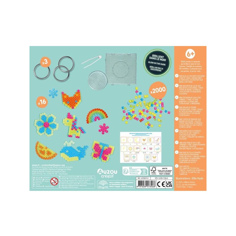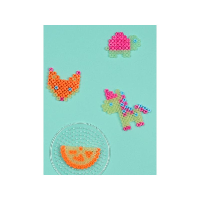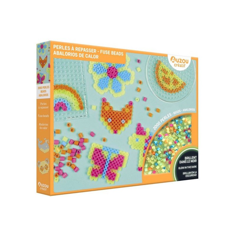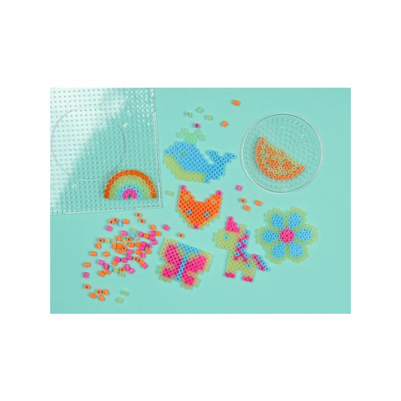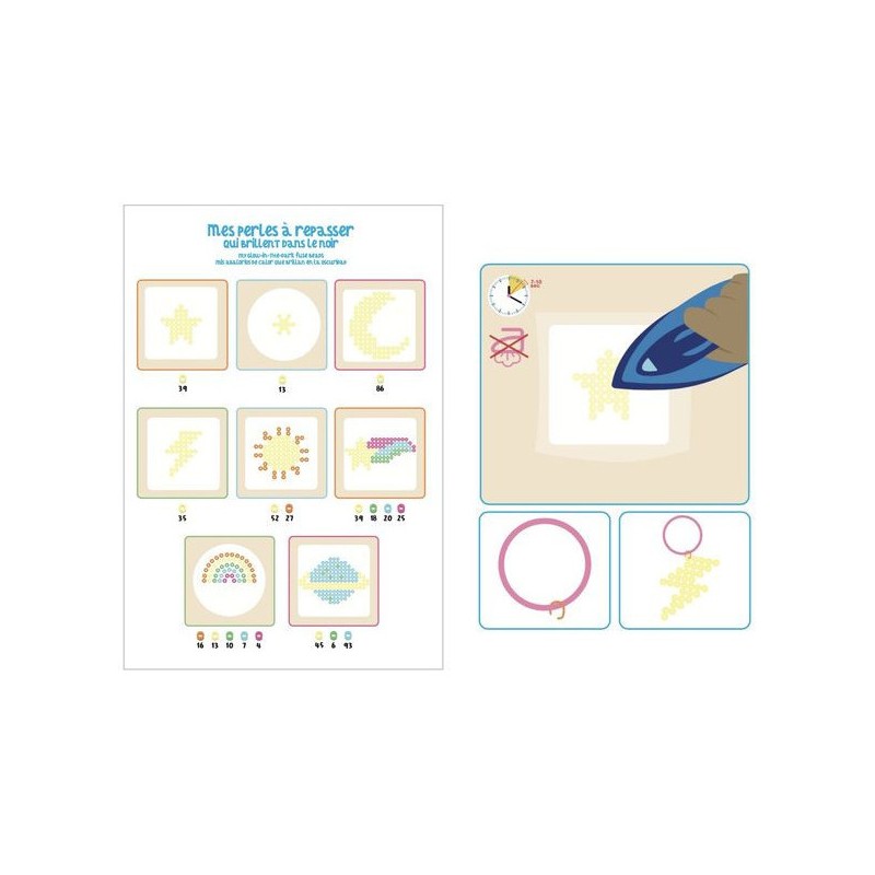 Réalise de magnifiques créations en perles à repasser grâce à tous tes accessoires ! 2000 perles dont 500 qui brillent dans le noir, deux plaques pour faire tes modèles, 16 modèles et des porte-clés pour y accrocher tes créations !
