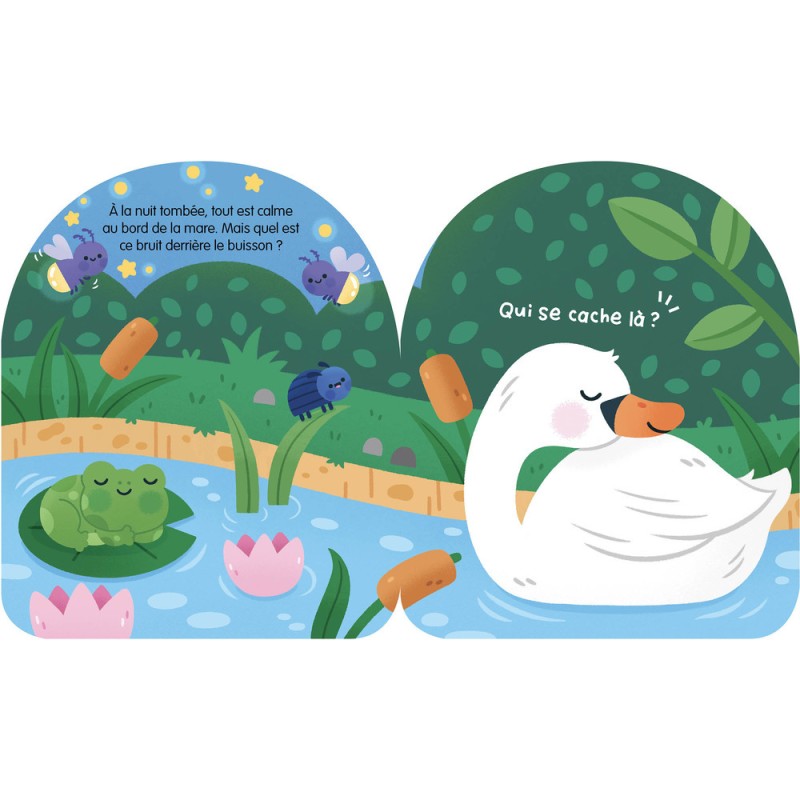 Les animaux jouent à cache-cache dans la nuit… Tire sur les éléments qui dépassent et écoute les sons pour découvrir qui se cache à chaque page. Inédit : du vernis phosphorescent à chaque page pour faire briller le livre dans le noir !