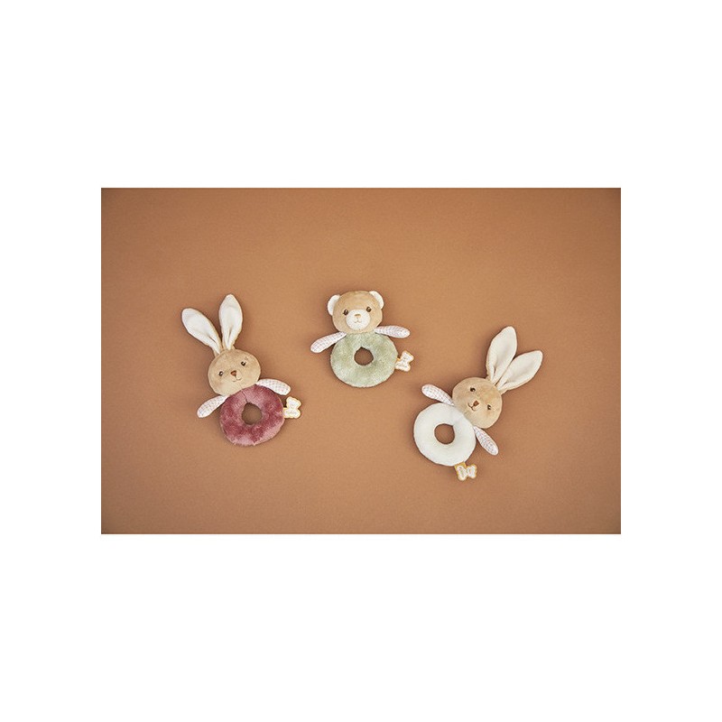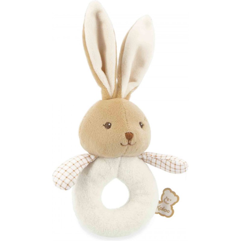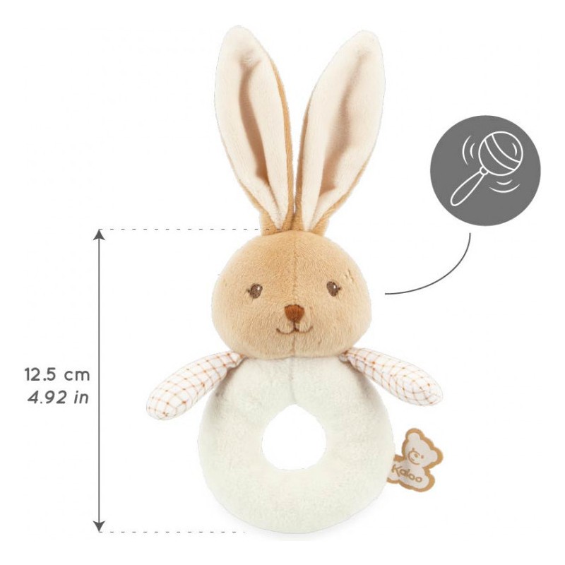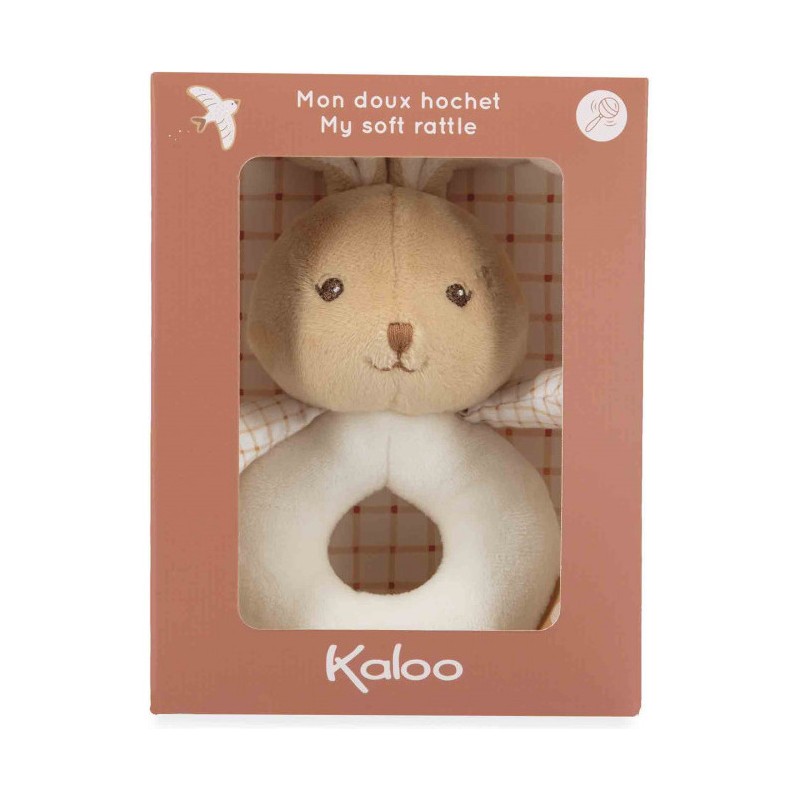 Un doudou hochet pensé pour stimuler l’éveil de bébé tout en douceur ! Grâce au grelot intégré dans la tête du lapin, ce jouet d'éveil sensoriel stimule la curiosité de bébé lorsqu'il le secoue. La forme en anneau de ce doudou permet à bébé de l’attraper facilement, encourageant ses premiers gestes précis et l’exploration de ses mains. Sa belle fourrure crème est très douce au toucher, ce qui procure une sensation agréable pour les petites mains de bébé. Cette texture stimulante invite aussi à de tendres câlins. Avec ses bras en popeline et en imprimé vichy, ce doudou crème arbore un look tendre et intemporel, propre à l’univers Kaloo. Ce doudou hochet est un indispensable pour amuser votre bébé : il favorise son développement sensoriel et sa coordination main-œil. Son petit format de 12,5 cm en fait un jouet d'éveil facile à emporter partout : il se glisse facilement dans le sac à langer ou la poussette pour que bébé ait toujours son compagnon tout doux à portée de main pour des moments de jeux. Confectionné avec soin, ce doudou est composé avec au moins 80% de matières recyclées, y compris son rembourrage en polyester recyclé. Adapté aux petits dès la naissance, il peut être lavé en machine à 30°, pour un entretien facile. Des heures de jeu et de découvertes attendent votre bébé avec ce doudou hochet lapin !