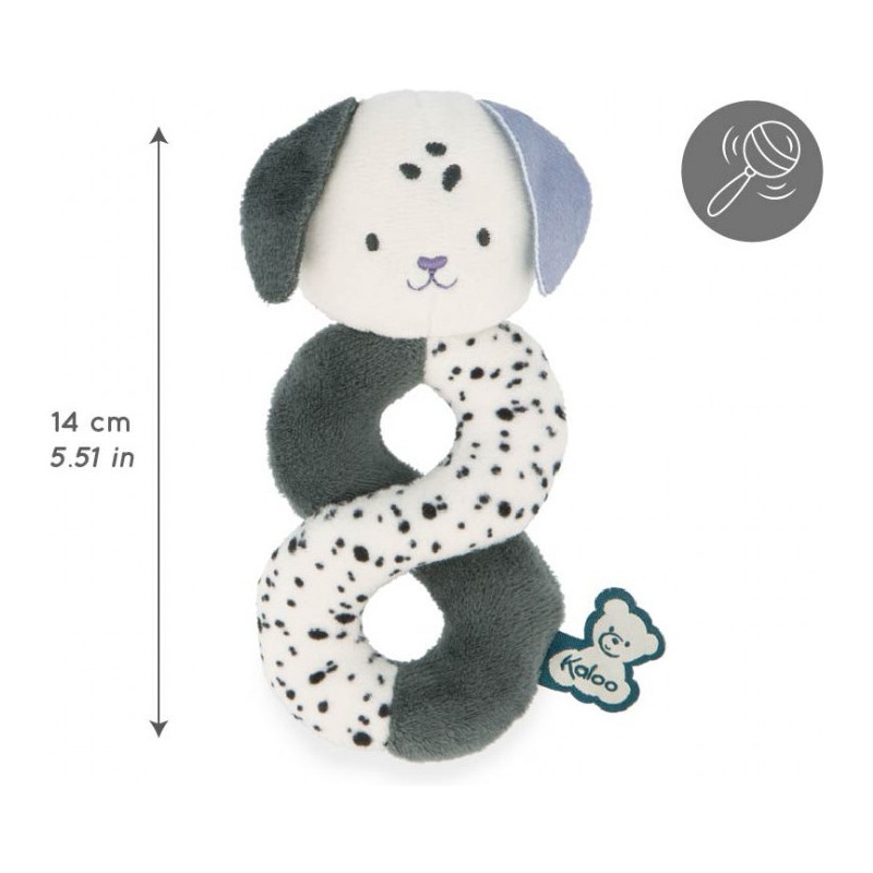 Un hochet petit chiot en forme torsadée, pensé pour les premières prises en main ! Conçu en collaboration avec des psychomotriciens, ce hochet d'éveil de 14 cm a été conçu pour favoriser l'éveil sensoriel de bébé en douceur. Bébé peut l’attraper, le secouer et s’émerveiller en découvrant un son doux et agréable à chaque mouvement, stimulant son ouïe et sa coordination oeil-main. Sa silhouette est réfléchie pour une prise en main facile dès les premiers gestes et développe la préhension des tout-petits. Quand bébé agite le hochet, bébé stimule également son sens du toucher grâce aux différentes textures. Fabriqué avec soin, ce petit compagnon doit son incroyable douceur à sa composition en micro-velours et fourrure synthétique. Idéal pour les premières découvertes sensorielles, ce hochet est doté de couleurs et d'imprimés à pois contrastés adaptés aux tout-petits. Des détails pensés pour stimuler la vue de bébé dès le plus jeune âge ! Pour l'utiliser, vous pouvez, dans un premier temps, montrer à bébé le petit chiot en le secouant doucement pour éveiller sa curiosité… puis le laisser explorer et découvrir lui-même ses surprises lorsqu’il commencera à saisir des objets. Un jouet d'éveil complet pour stimuler tous les sens de bébé ! Lavable en machine à 30°, ce hochet fait partie de la gamme Stimuli de Kaloo, développée en collaboration avec des psychomotriciens pour aider bébé à développer ses compétences sensori-motrices dès la naissance.