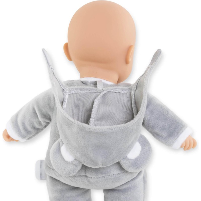 Son petit plus : la capuche du Pti'Coeur Koala peut être retirée, mais elle reste astucieusement attachée au poupon grâce à une petite languette située derrière la tête, pratique pour éviter de l'égarer !