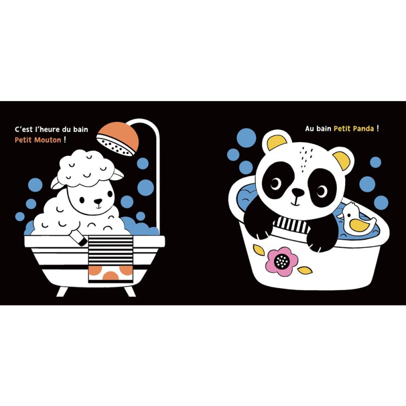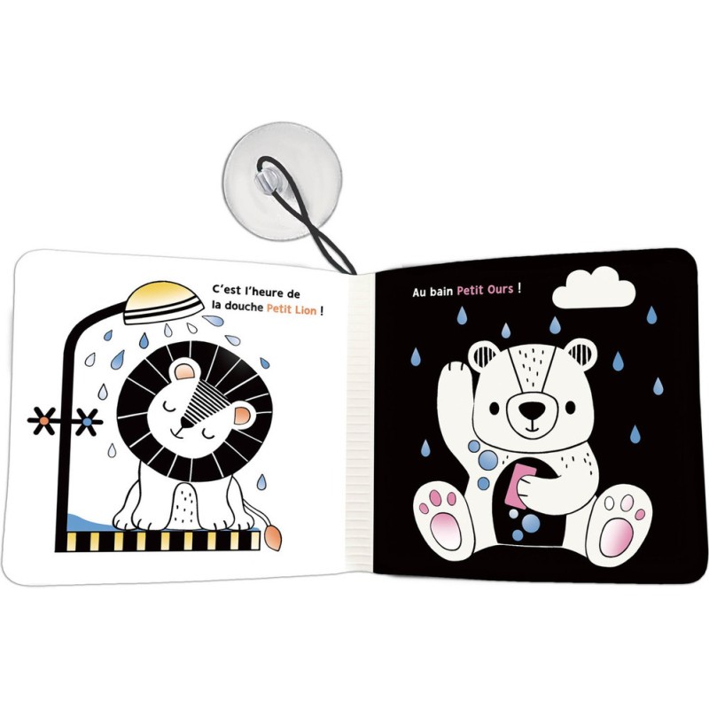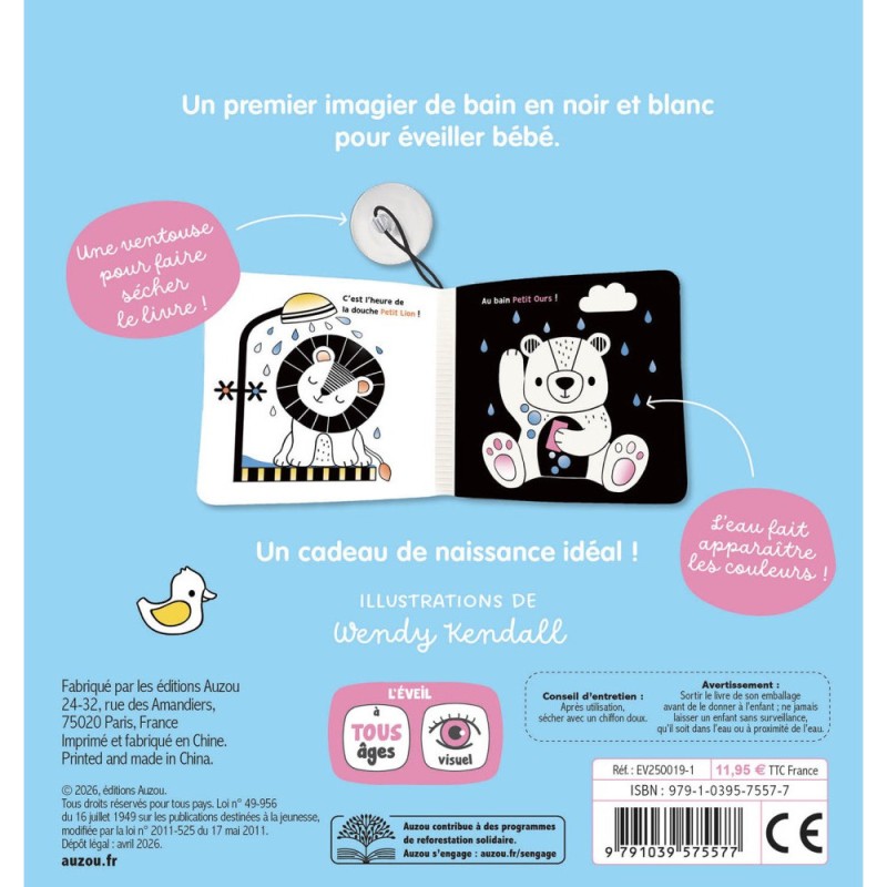 Grâce à ses illustrations en noir et blanc, adaptées au développement visuel des bébés, il stimule l’éveil dès les premières découvertes. En plongeant le livre dans l’eau, l’enfant voit apparaître puis disparaitre des éléments cachés : une expérience sensorielle et ludique qui transforme le bain en un moment d’éveil et de jeu partagé !