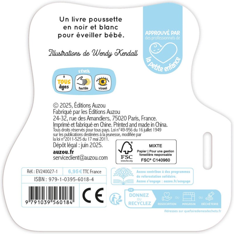 Mon premier livre poussette en noir et blanc - Animaux mignons - Livres enfants - Auzou