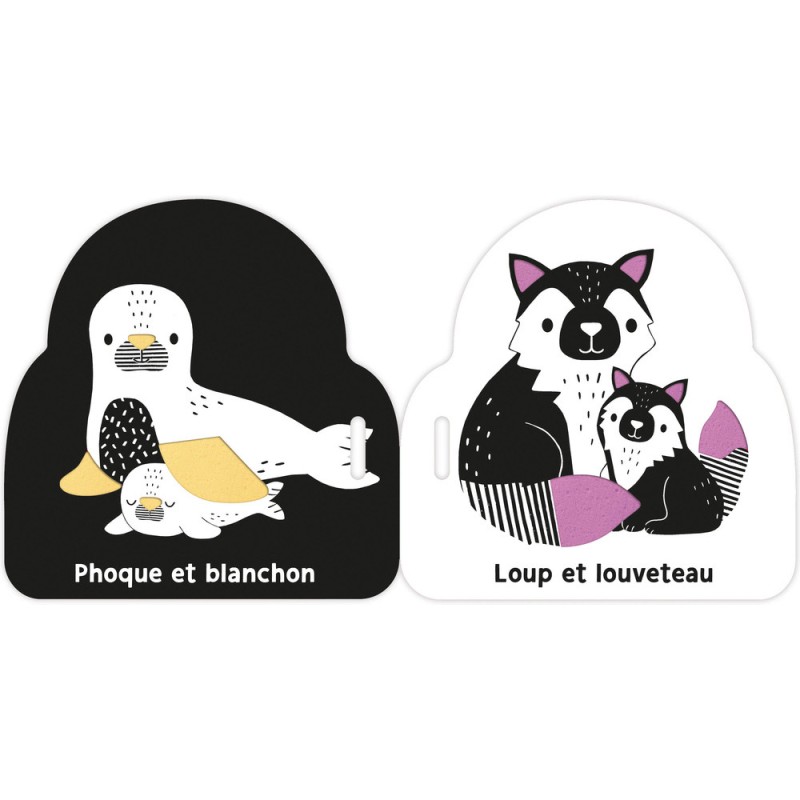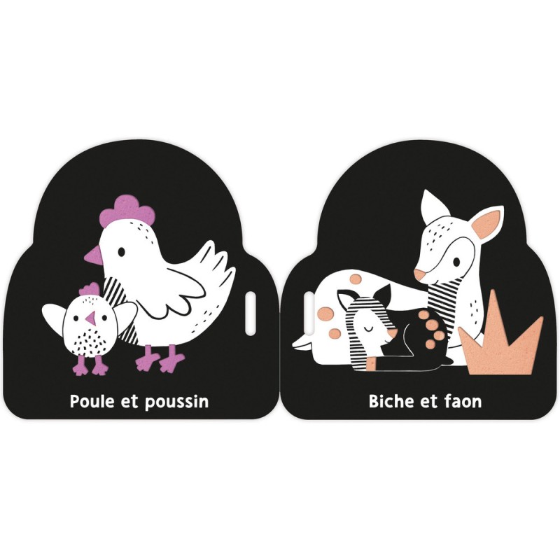 Ce petit livre en mousse tout léger est facile à manipuler pour les petites mains et se transporte partout avec sa lanière en tissu à scratcher ! Les illustrations contrastées permettent un éveil visuel dès la naissance, et les pages en mousse colorées (accessibles à travers de petites découpes présentent sur chaque page) participent à l'éveil tactile de bébé. Un imagier pour apprendre ses premiers mots sur la thématique des bébés animaux !