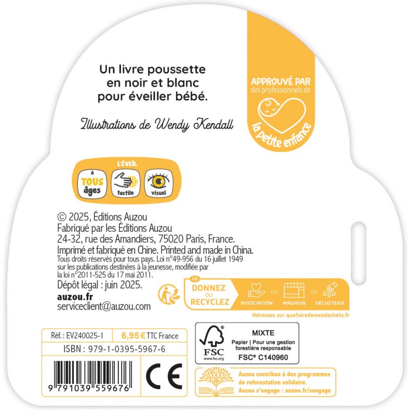 Mon premier livre poussette en noir et blanc - Bébés animaux - Livres enfants - Auzou
