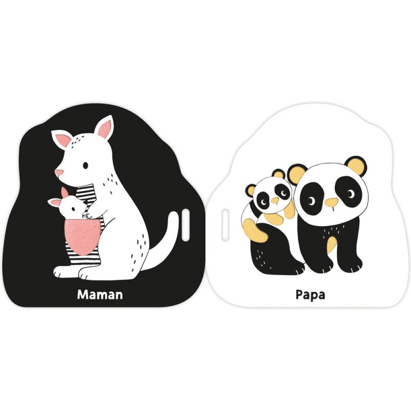 Ce petit livre en mousse tout léger est facile à manipuler pour les petites mains et se transporte partout avec sa lanière en tissu à scratcher ! Les illustrations contrastées permettent un éveil visuel dès la naissance, et les pages en mousse colorées (accessibles à travers de petites découpes présentent sur chaque page) participent à l'éveil tactile de bébé. Un imagier pour apprendre ses premiers mots !