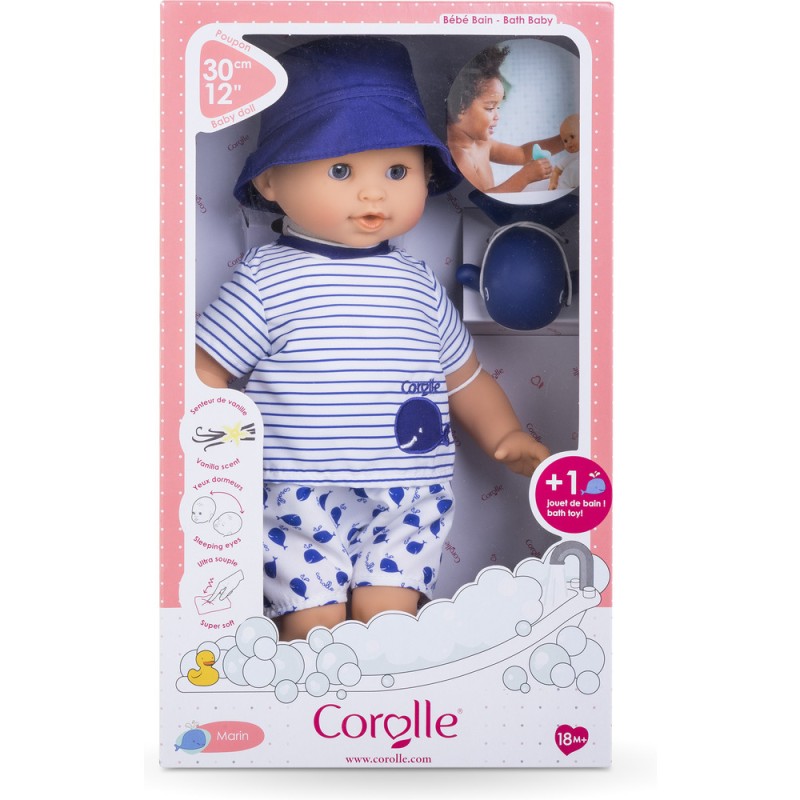 Bébé Bain Marin possède bien sûr tous les attributs d'un poupon Corolle : son visage, ses bras et ses jambes sont en vinyle doux au toucher, et possèdent une délicate senteur de vanille, réconfortante pour les enfants.