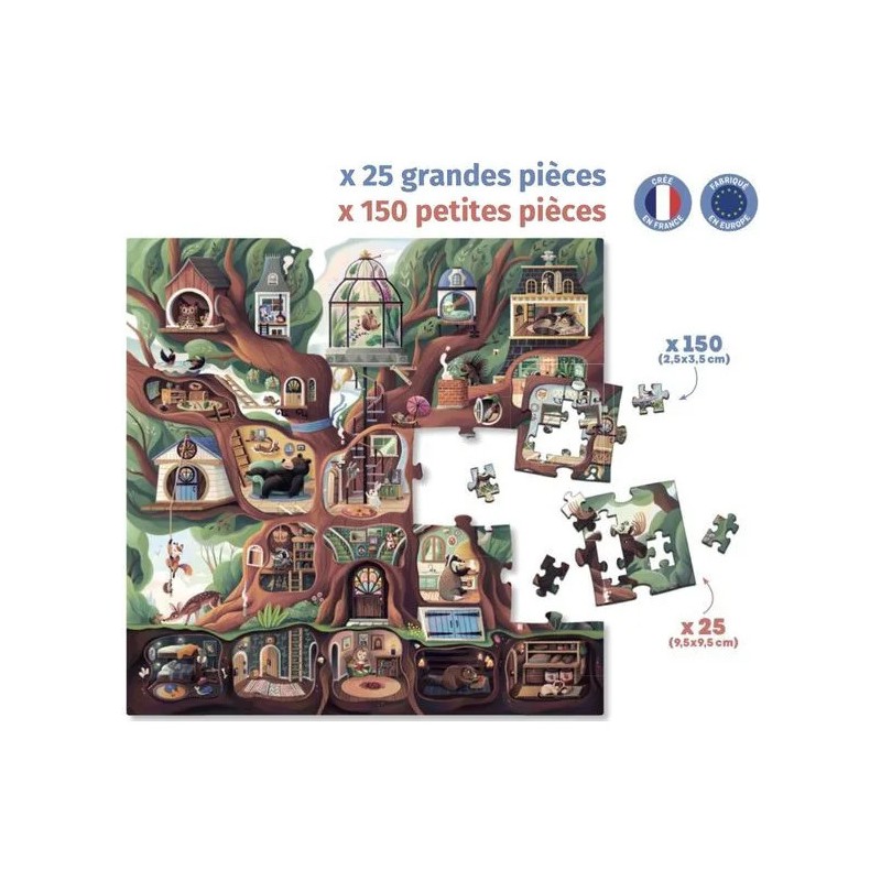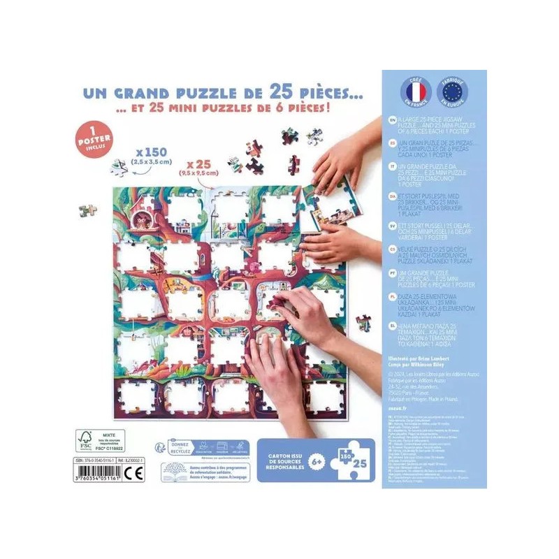 Nouveau concept ! Un puzzle collaboratif,qui associe des grandes pièces (pour les plus jeunes) et des petites pièces (pour les plus grands) : il permet de rassembler petits et grands, parents et enfants, frères et surs sur un même puzzle. Une activité à partager en famille. Dimensions : 24,5 x 24,5 cm
