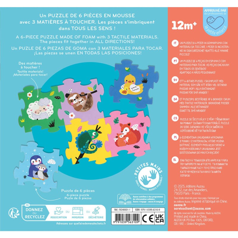 Le puzzle en mousse propose 3 belles matières à toucher pour développer l’éveil sensoriel du tout-petit. Ses 6 grandes pièces colorés avec d'adorables animaux peuvent s’assembler comme l’enfant le souhaite, pour un puzzle refaisable à l’infini !
