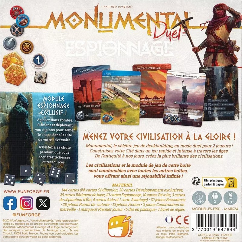 La boite Espionnage de Monumental Duel vous propose les civilisations suivantes :