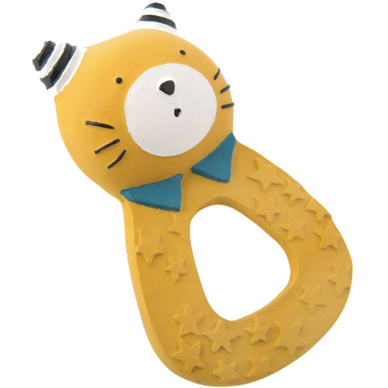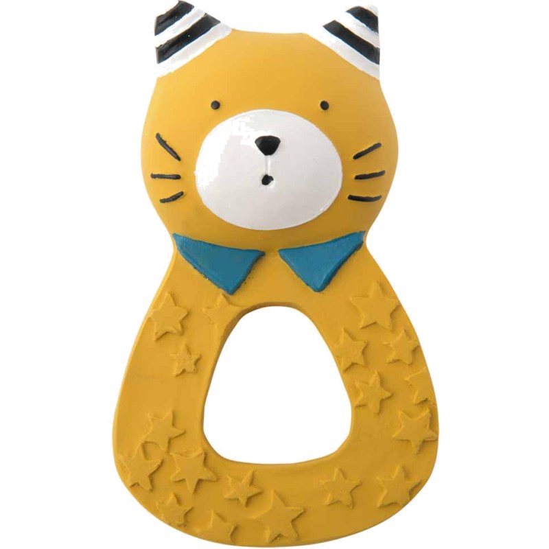 Anneau en caoutchouc 100% naturel, issu de la sève d'Hévéa, avec le tendre minois de Lulu le chat ! Pour soulager les dents de bébé ou jouer dans le bain, il n'a ni trou ni sifflet pour éviter l'accumulation de saletés à l'intérieur.